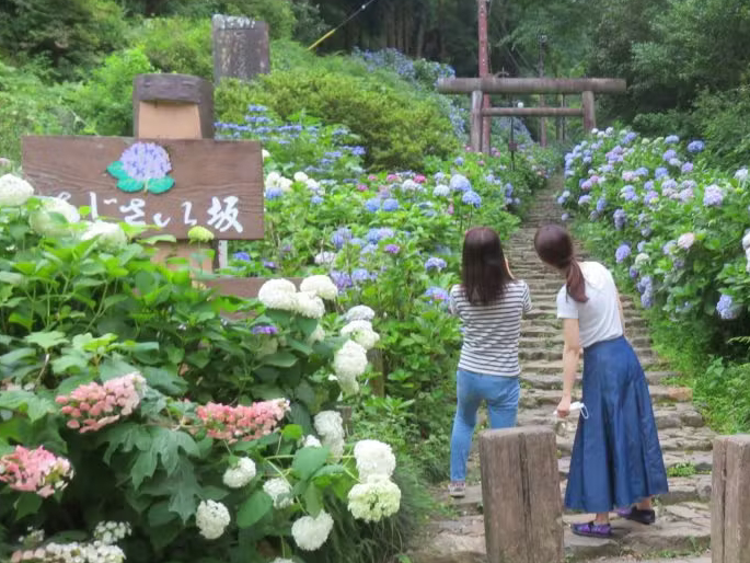 毎年6月中旬から7月上旬にかけて、栃木市の太平山県立自然公園では「とちぎあじさいまつり」が開催されます。敷地内にのびる「あじさい坂」と呼ばれる太平山神社の表参道や、約1000段の石段には、色とりどりのあじさいが約2500株咲き誇ります。