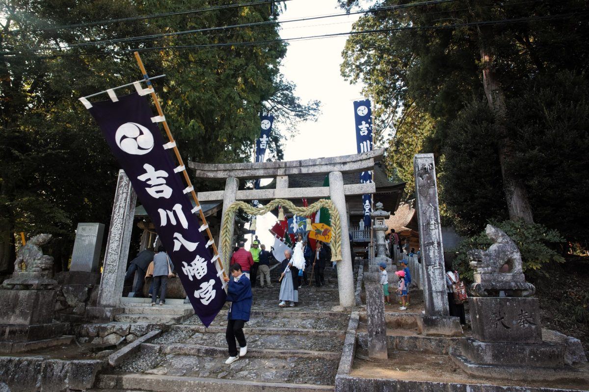 祭りの行われる吉川八幡宮は、平安時代1096年に岩清水八幡宮の別宮として建立し、本殿は国の重要文化財に指定される歴史ある場所です。その北と南の地域から10歳前後の男子(当番)が一人ずつが神人となり、行われるお祭りです。