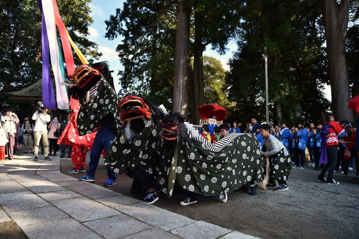 低い姿勢の獅子舞も子供達が奉納して地域総出でお祝いをします。