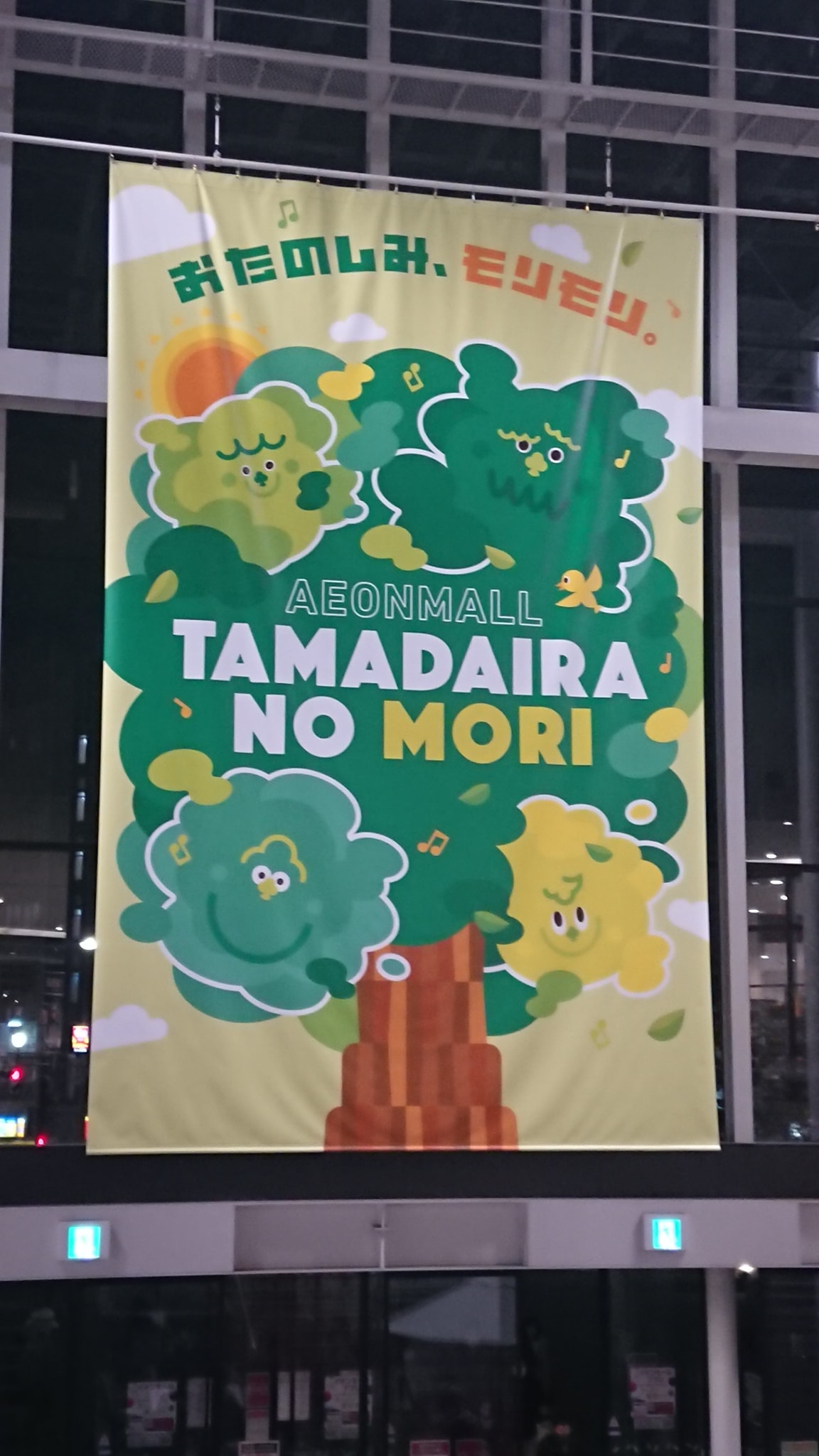 多摩の森を意識した可愛らしいポスターが掲示されておりました。日も暮れて来たので、そろそろ花火会場の豊田南第一公園に向かおうと思った時に目に入ったので、正に「おたのしみ、モリモリ」といった感じでテンションが上がりました笑