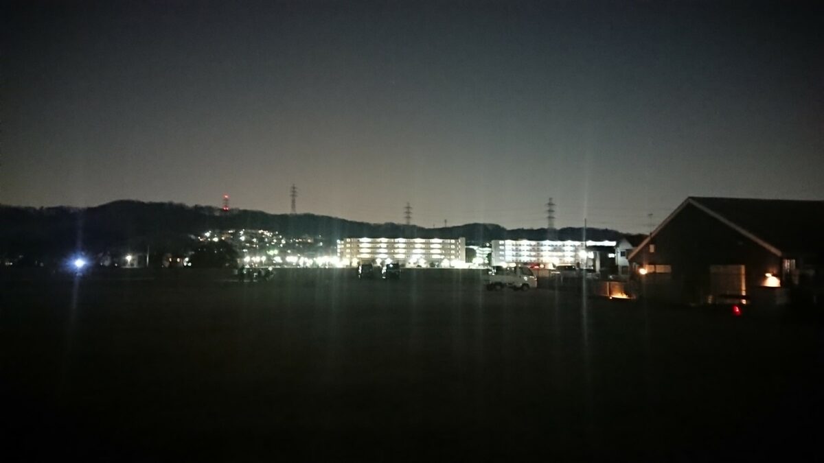 暫く歩くと会場に着きました。写真撮るの下手だなと思われる方も多いかとは思いますが、本当に真っ暗で何も見えません。東京都内でも都心部を除く他の地域の夜は本当に暗いところが多いです。