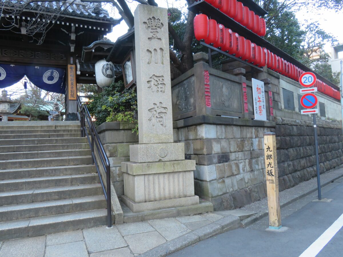 豊川稲荷東京別院は、東京メトロ赤坂見附駅の南西に約300メートルのところに社殿を構えています。青山通りに面しているので、車でも抜群のアクセスです。江戸時代には定火消屋敷が建ち並んだ九郎九坂の坂上の山門が、参詣者を出迎えてくれます。