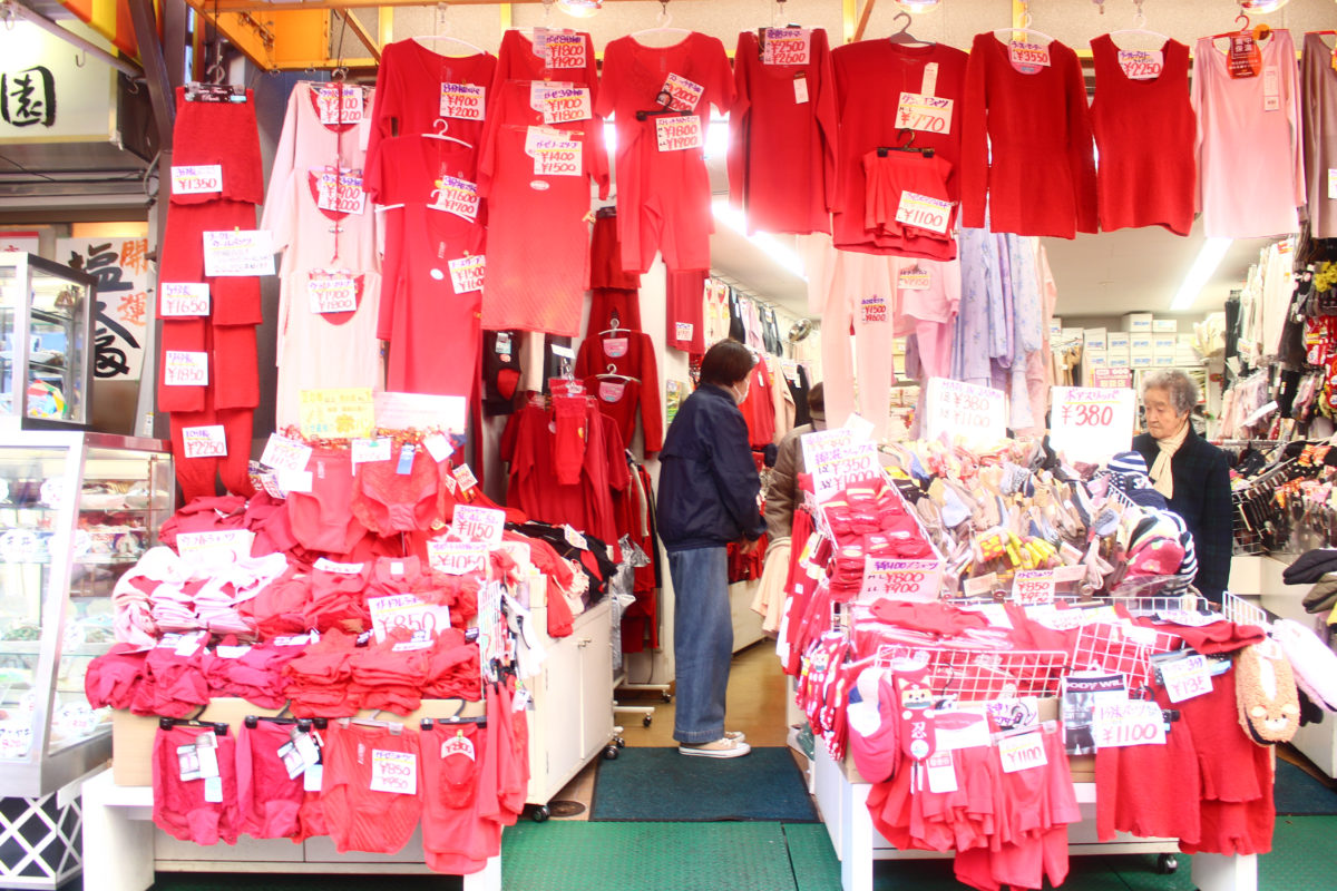 おせち用の佃煮やかずのこ、みかんに干し柿、名物の塩大福に幸福だんごなど、食べ物の露店がぎっしりと並ぶなか、見逃せないのが「日本一の赤パンツ」ことマルジ「赤パンツ館」です。「赤」は太陽や血液など生命力の象徴、邪気を払う色とされます。新年の無病息災を祈るためにもぜひ手に入れたいですね。