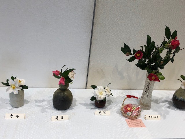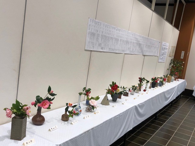 様々な花器に飾られた椿がたくさん展示されており、一輪で場の空気を変える椿の華やかで奥行きのある魅力を深く感じることができます。