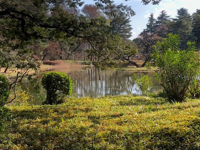 広い空間に、右も左も様々な木々が。池も美しく、パワーチャージ。