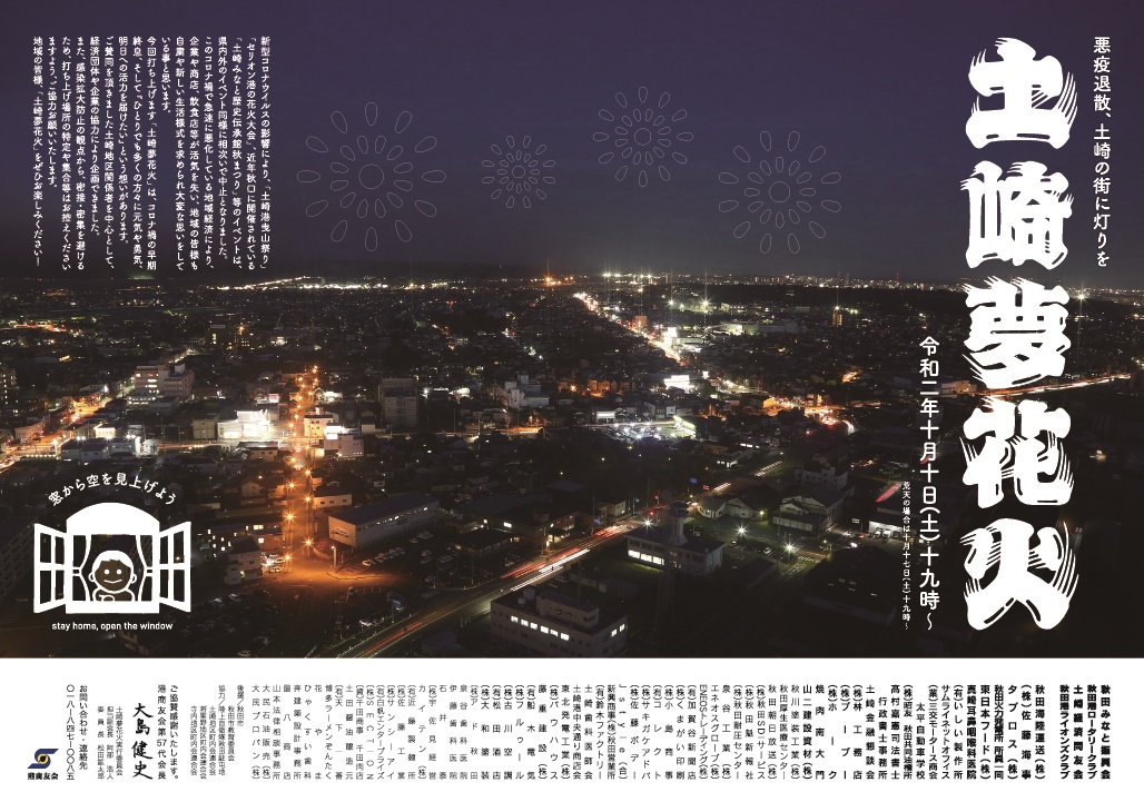 そんな中、主催者である秋田みなと振興会、土崎港曳山まつり実行委員会、港商友会が「子どもたちに元気になってもらいたい。そして明るい未来を想像してほしい。」と願いを込め企画した「土崎夢花火」が昨年に引き続き今年も秋田市土崎地区5か所で打ち上がりました。