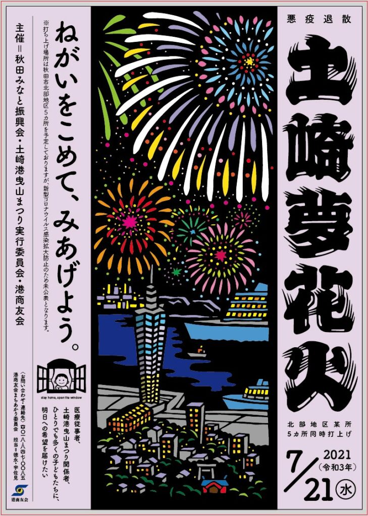 イベントもお祭りもない…そんな閉塞した状況の中、秋田みなと振興会、土崎港曳山まつり実行委員会、港商友会が「コロナ禍の早期終息、一人でも多くに人に元気や勇気、明日への活力を届けたい」という想いのもと企画。そして開催された花火が「土崎夢花火」になります。