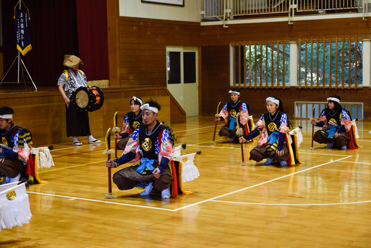 2011年の東日本大震災の津波で太鼓や衣装などが流されてしまい、5年間の活動休止ののちに復活を遂げた。幕を大きく振る姿にはとても迫力が感じられた。