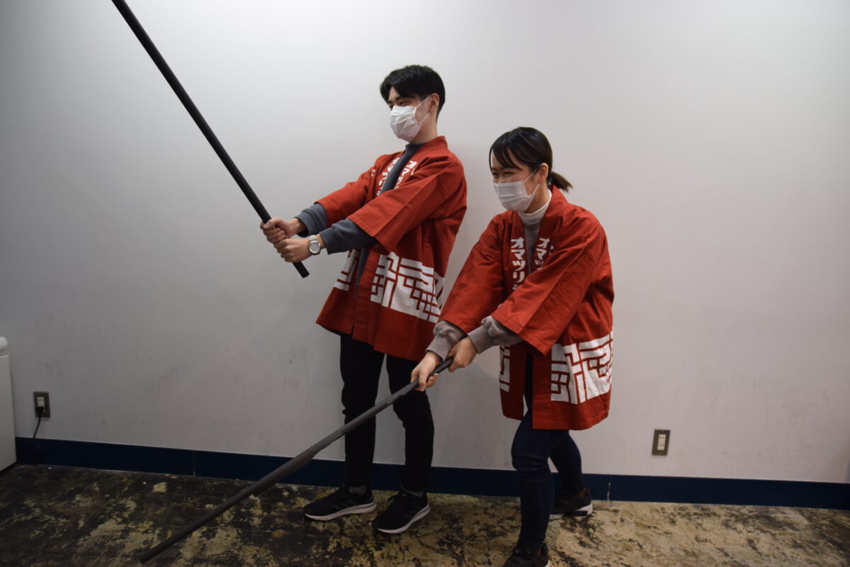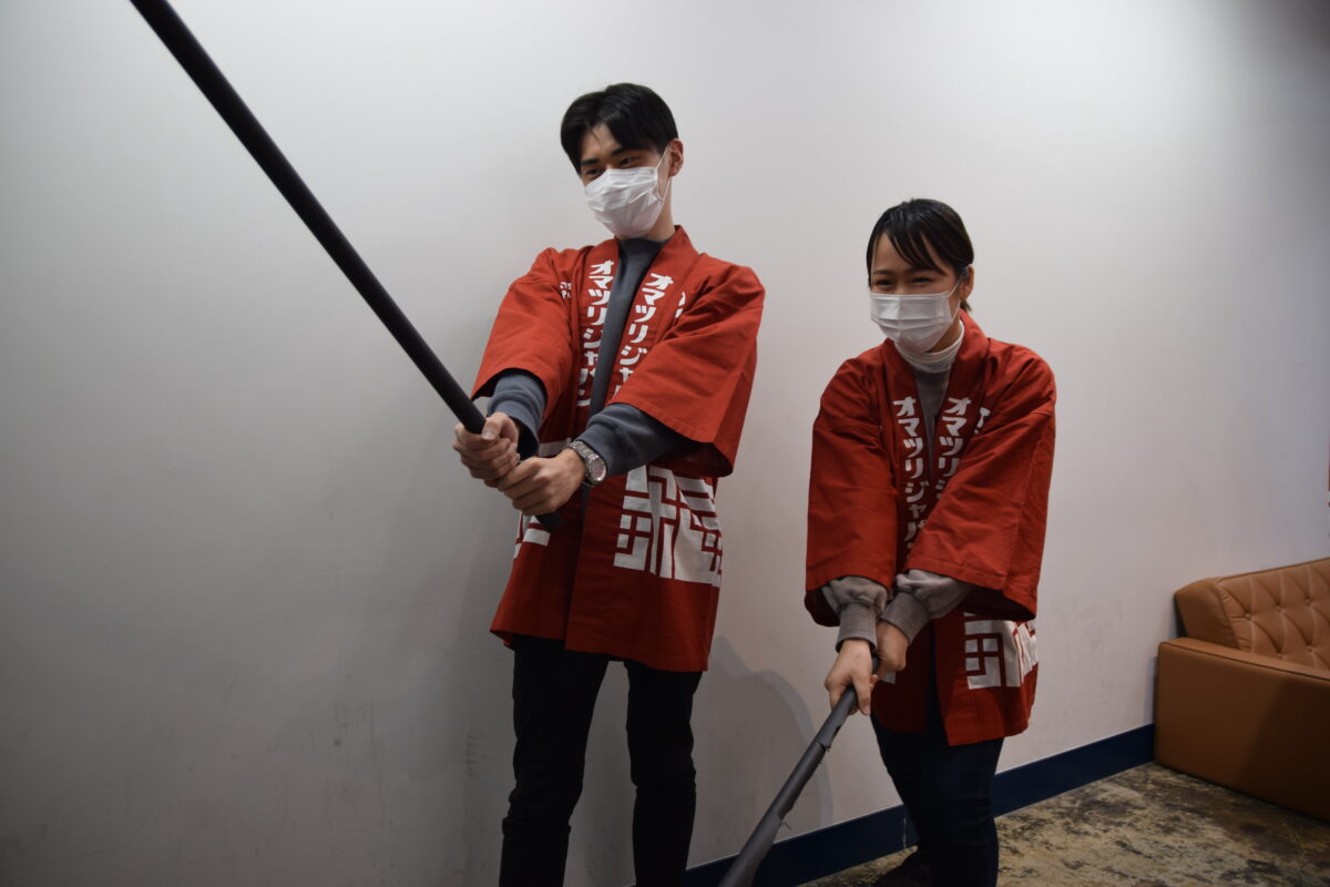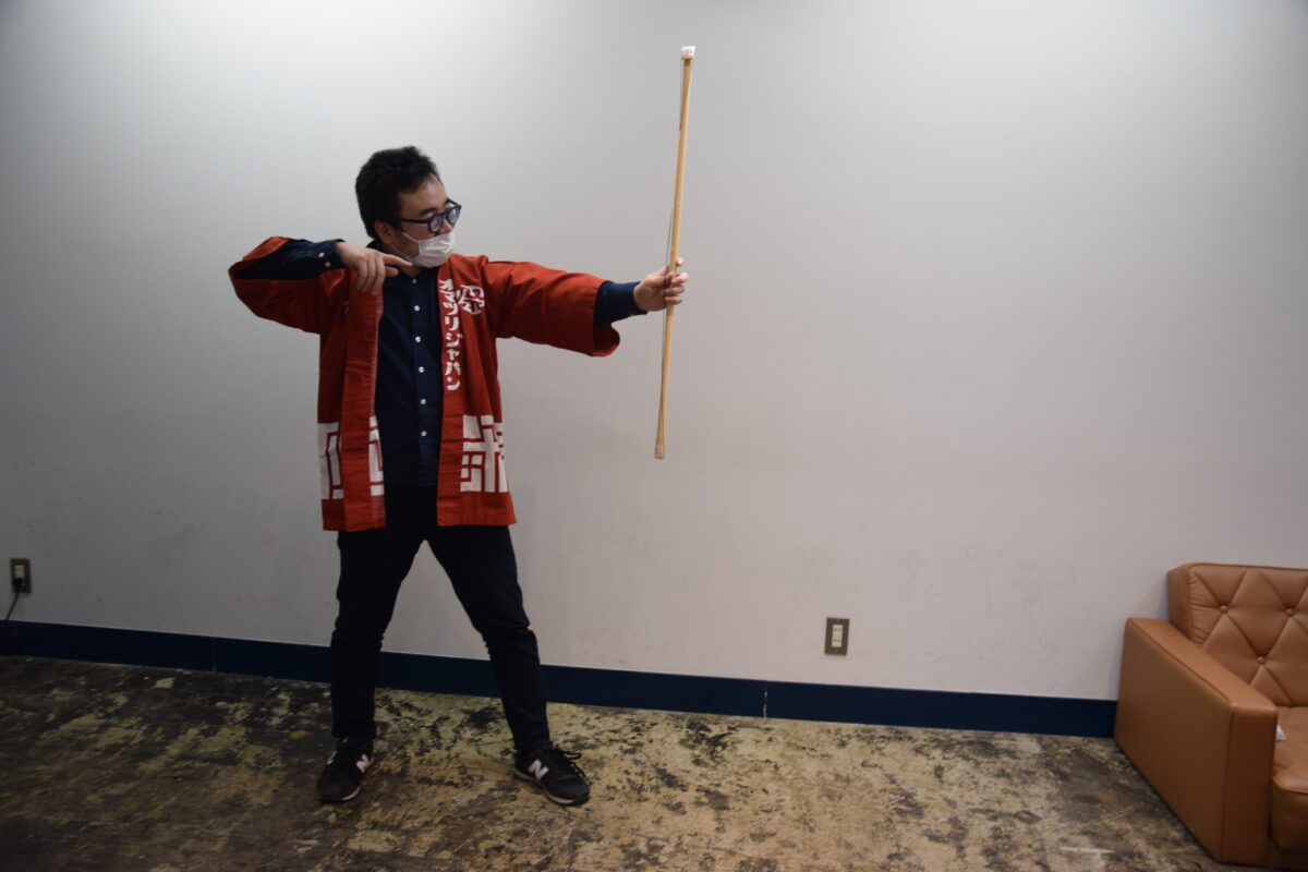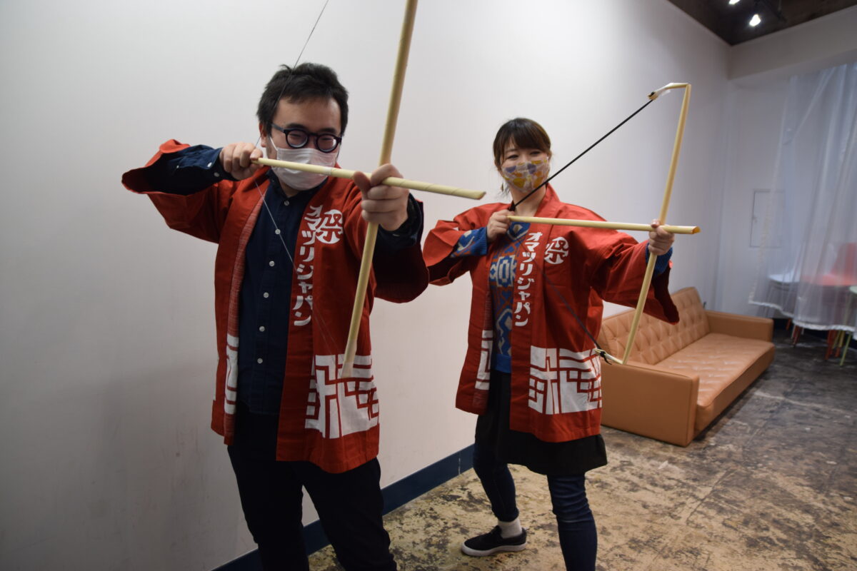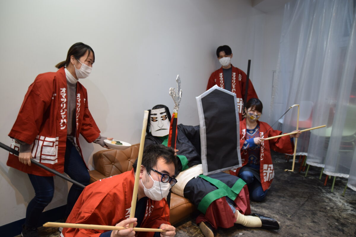 それを再現しようとはあまりにも恐れ多く、もちろん完全再現できるわけもないのですが、それっぽく作った道具とほぼほぼ気合いだけで、オフィスの疫鬼と邪気を見事に祓ってみせましょうぞ!では、オマツリジャパン版の追儺式スタートです!