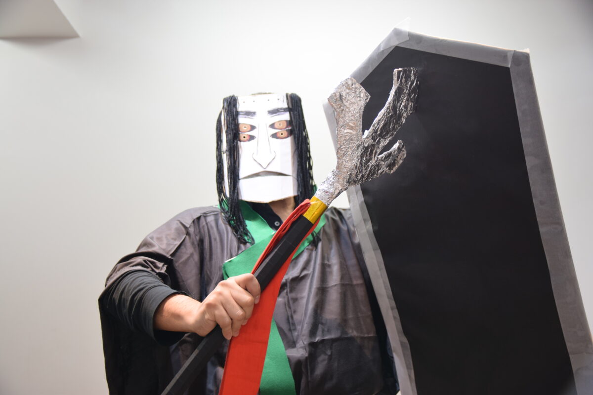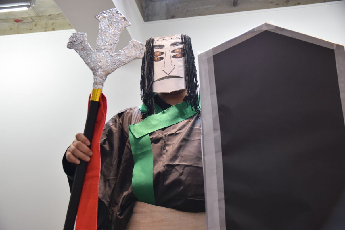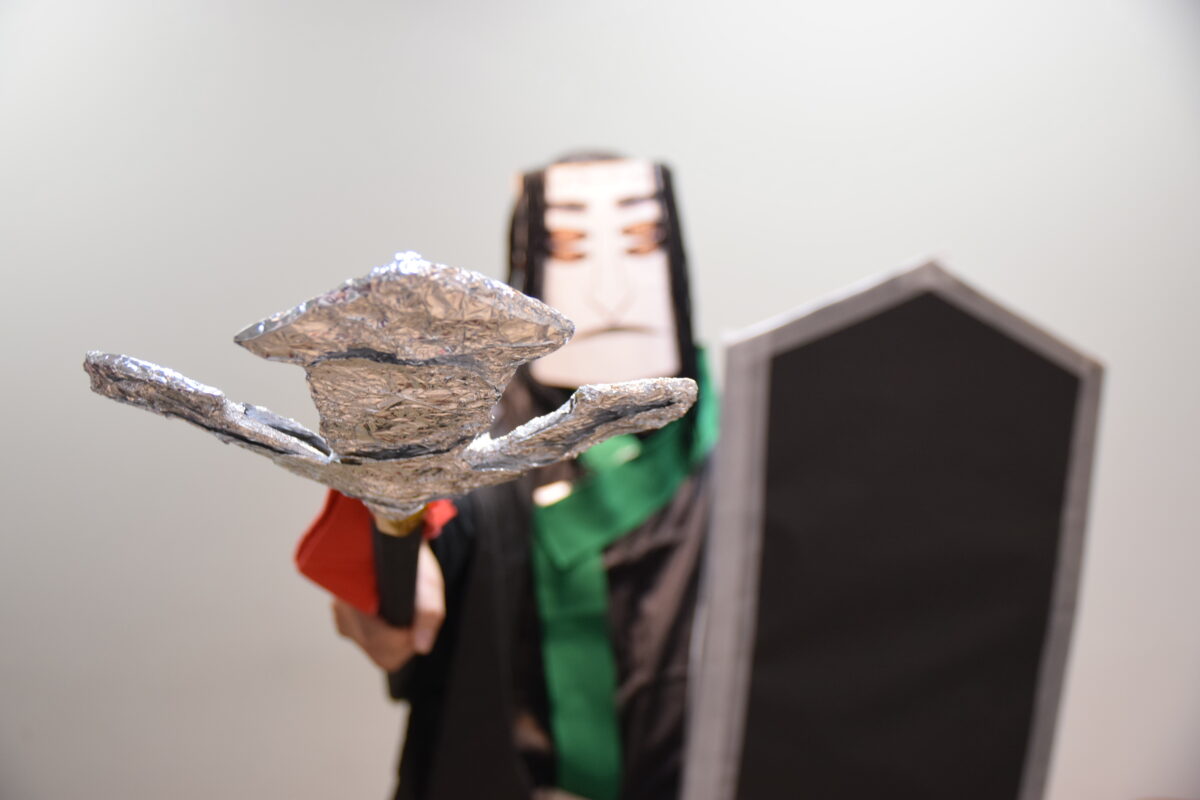100均グッズと段ボールを駆使したドラクエみ満載の盾をたずさえ、矛を鬼どもに向けて