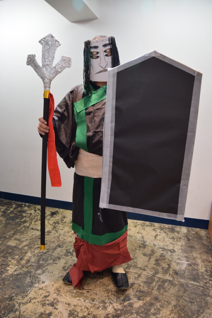 衣装は有り物の布と帯、一番苦労しそうだったお面のデータも奇跡的に●witterで拾えたので、見た目はかなり寄せることができた方相氏。