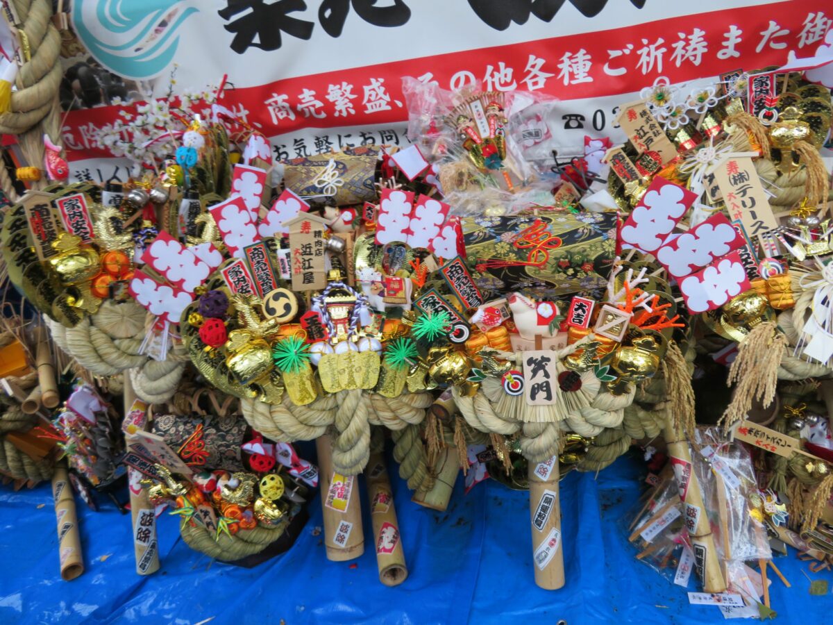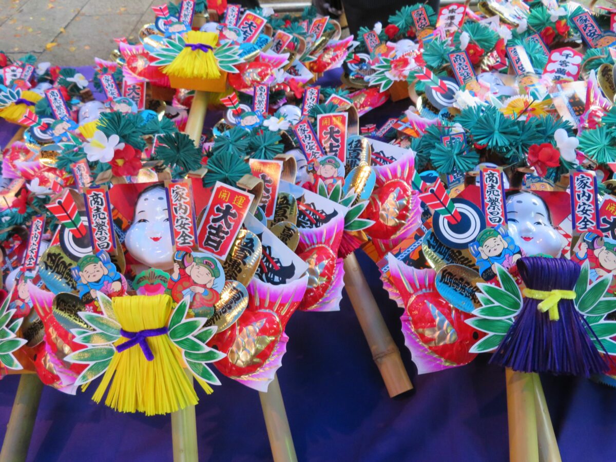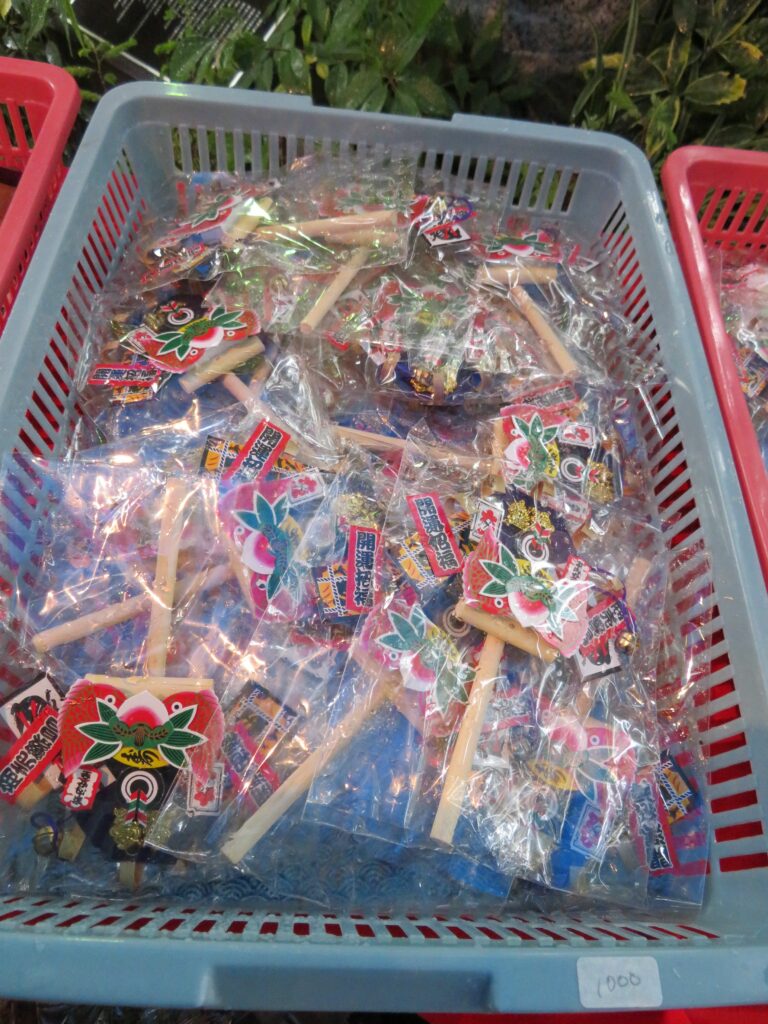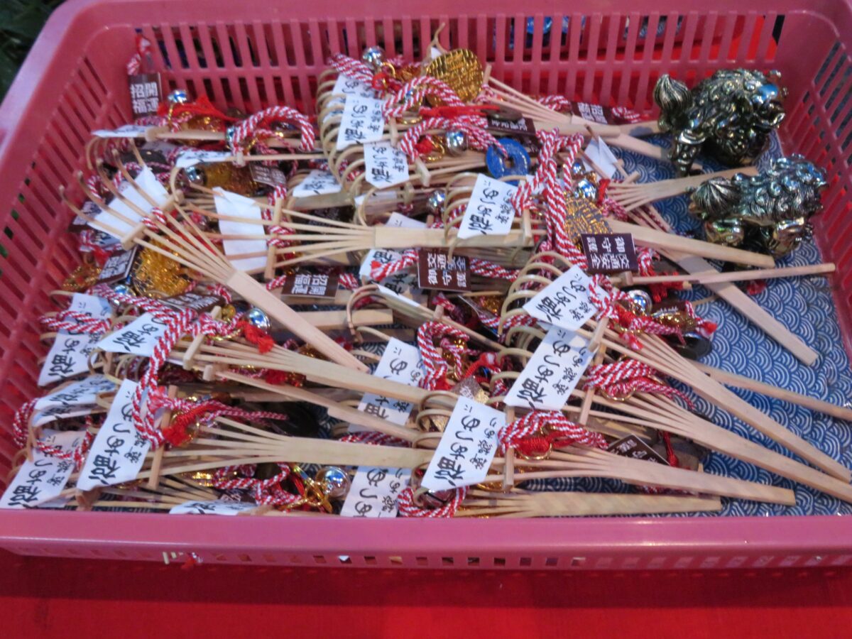 酉の市には大小の熊手が並びますが、小ぶりの福あつめなども種類豊富に揃っています。