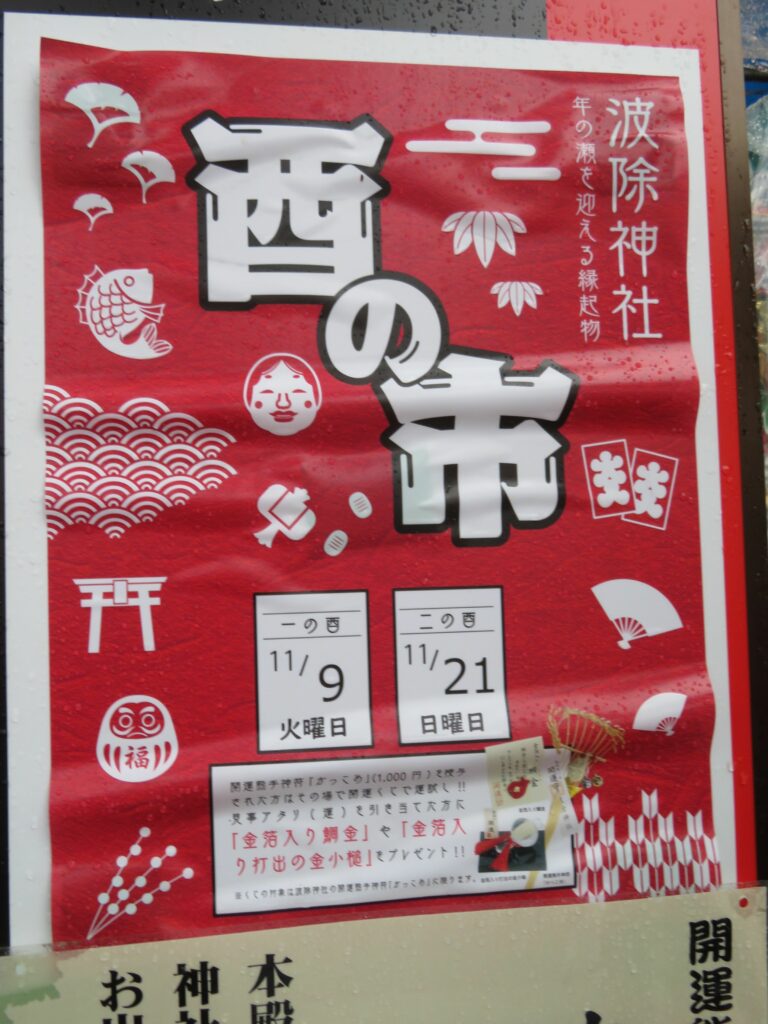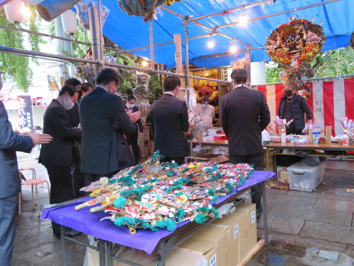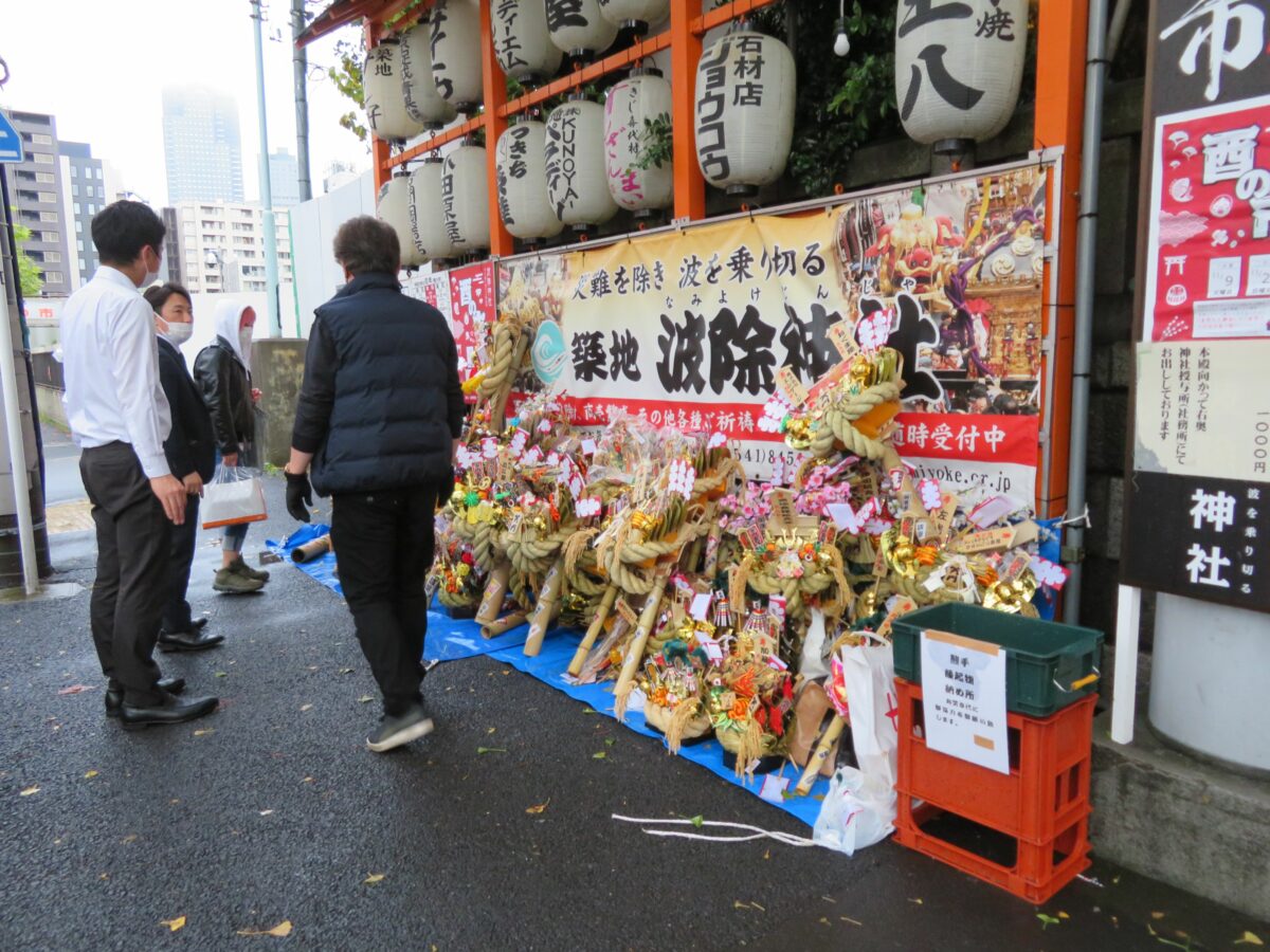 2021年の一の酉は11月9日です。東京都中央区の築地場外市場の南に接する築地波除神社では例年通り、酉の市が開催されました。神社の境内には種類豊富な酉の市の熊手が溢れ、授与所では開運熊手神符「かっこめ」が頒布されました。