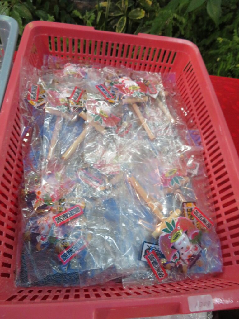 酉の市で授与所に準備される開運熊手神符「かっこめ」