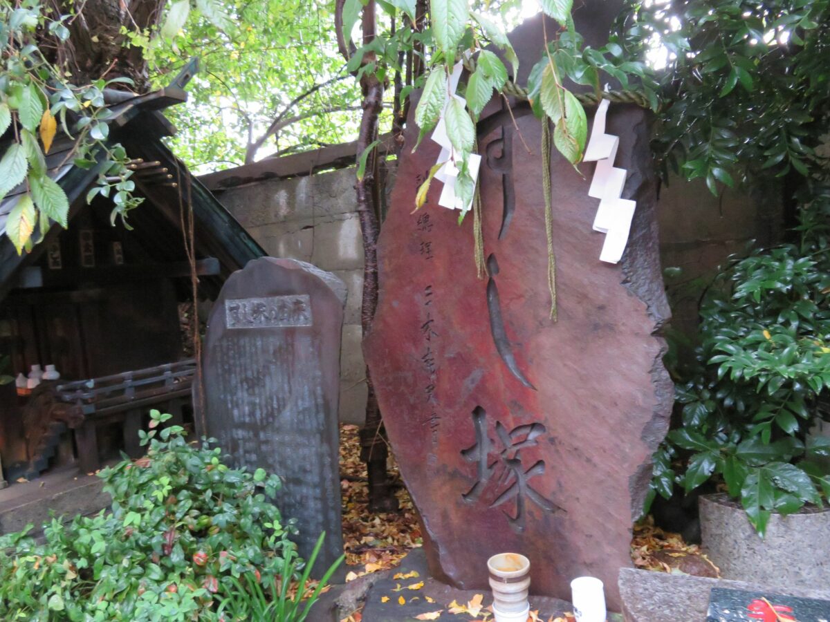 バラエティー豊かな熊手を眺めているだけでも時間を忘れてしまいそうですが、築地波除神社の西面は珍しいエリアとなっています。神社は築地場外市場の南に接しているため、魚に因んだ塚が並んでいるのです。活魚塚、鮟鱇塚、海老塚、すし塚、玉子塚などを眺めると、空腹感を感じるかもしれません。