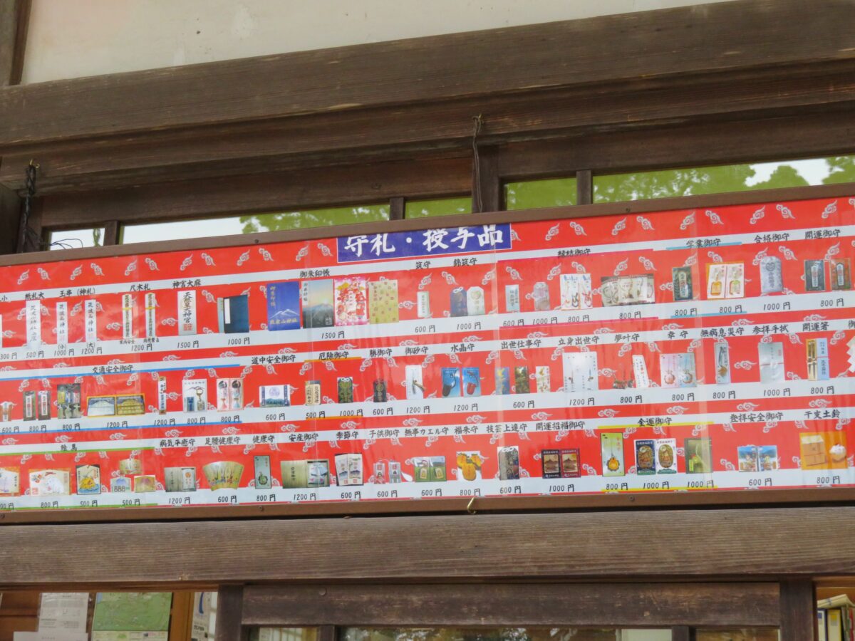 筑波山神社では拝殿の西に隣接する授与所で御朱印を頂くことができます。授与所では御朱印の他にも、豊富な種類の朱印帳や御札や御守りなどが準備されています。