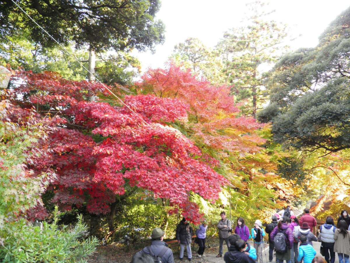 「筑波山もみじまつり」の期間中に紅葉で彩られる境内