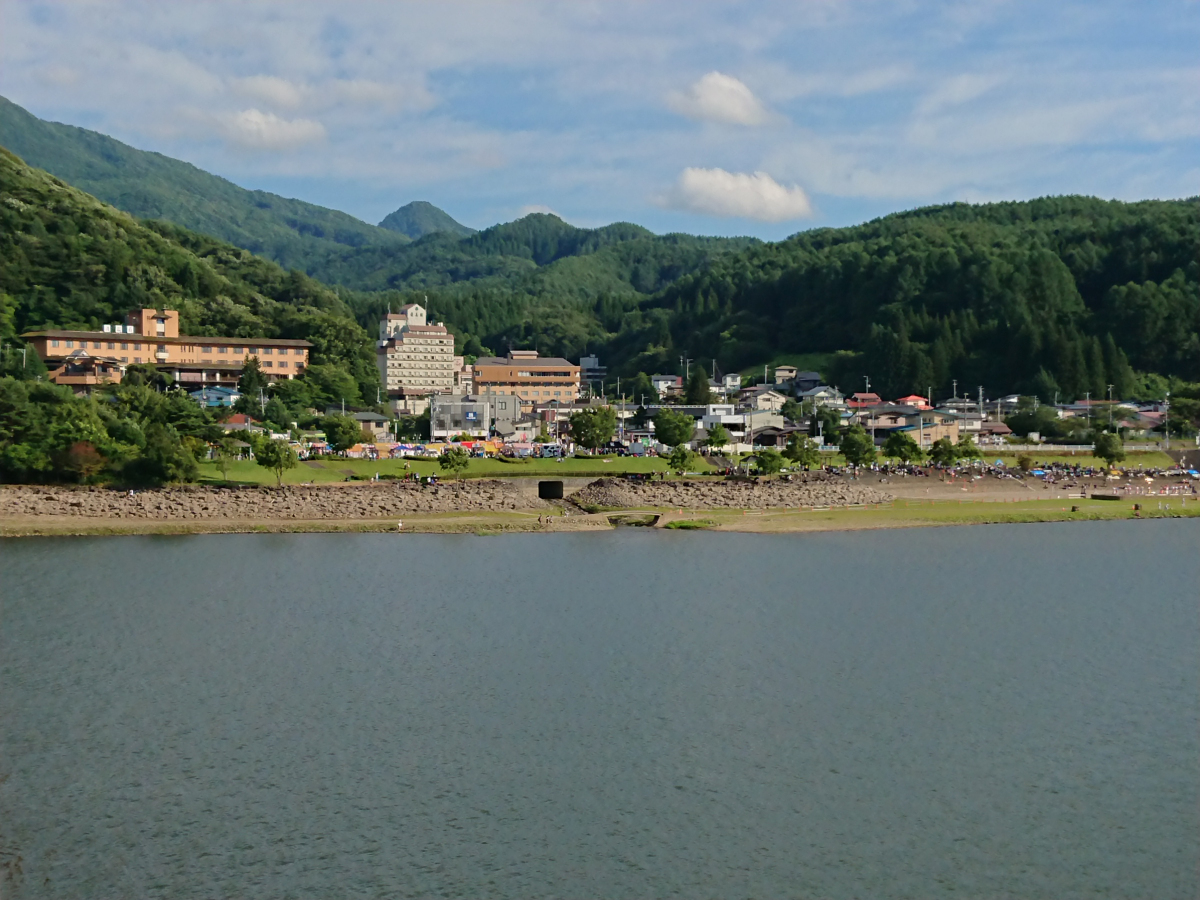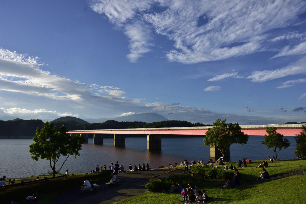 祭りの舞台となる御所湖は、雫石川をせき止めて1981年(昭和56年)に完成した、岩手山を望むのどかなダム湖です。