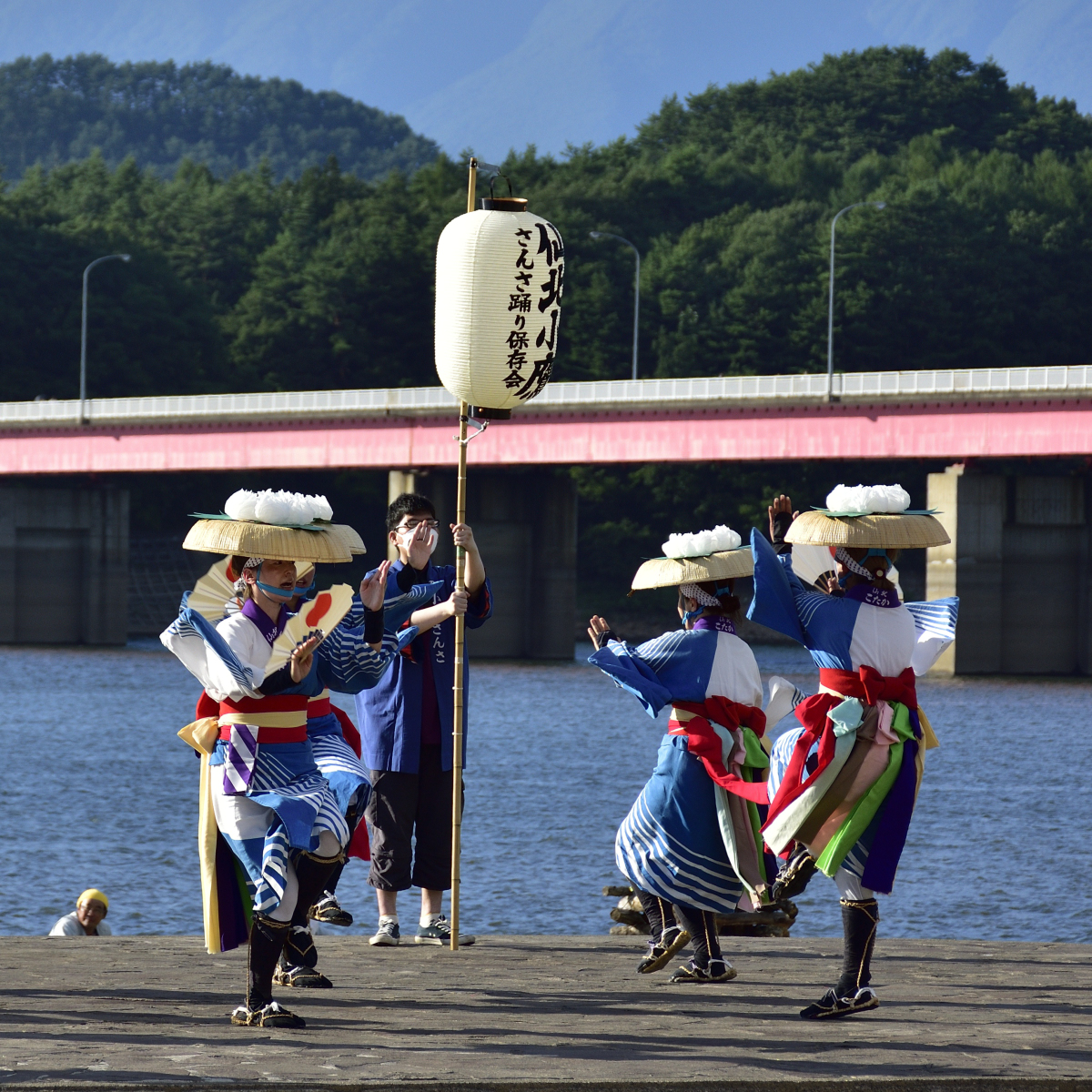 クライマックスの夜の花火打上の紹介が先になりましたが、御所湖まつりでは伝統芸能の数々がステージで披露されます。特に盛岡地域の伝統芸能「さんさ踊り」は様々な流派が登場し、それぞれの衣装や踊りの違いにも注目しながら楽しむことができます。