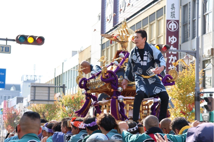 時を同じくして、上田城跡公園近くの路上では、伝統芸能の江戸芸かっぽれや民踊流し、まつりの成功を祈願するお神輿がスタートしました。
