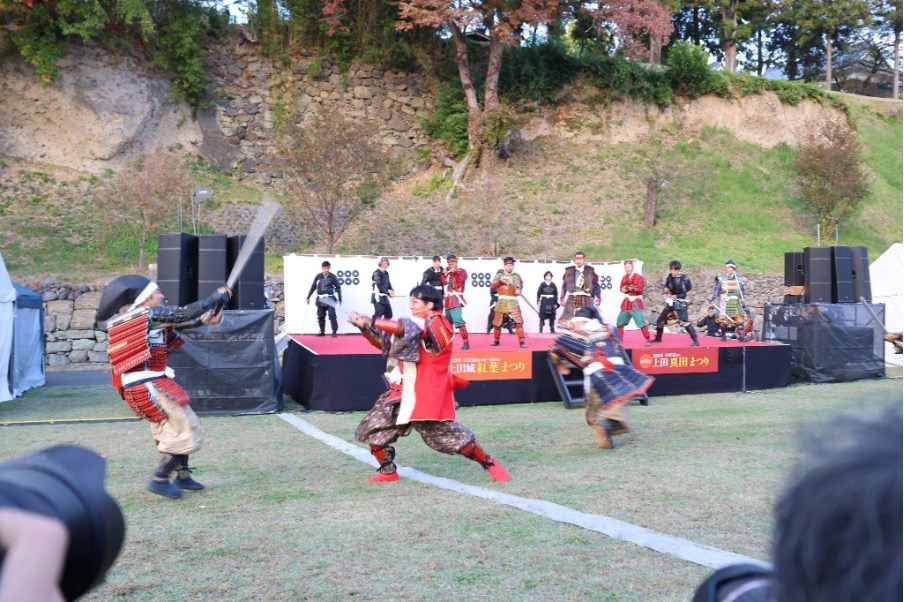 ラストに行われるのは、第一次上田合戦を舞台にした決戦劇。第一次上田合戦は、1585(天正13)年に起きた、徳川軍と真田軍による戦い。徳川約7,000の兵に対し、真田は2,000ほど。圧倒的不利な状況の中、巧みな戦術で徳川軍をやぶりました。真田幸村の初陣と伝えられている戦いで、この勝利によって真田氏と上田城の名が天下に知れ渡ったそうです。
