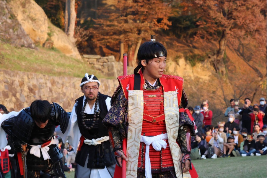 真田三代(幸隆・昌幸・幸村)や奥方、真田十勇士、甲冑隊、薙刀隊などが列をなして市街地を行進します。過去には、大河ドラマ『真田丸』で真田昌幸役を演じた草刈正雄さんなどの出演者が来たこともありました。
