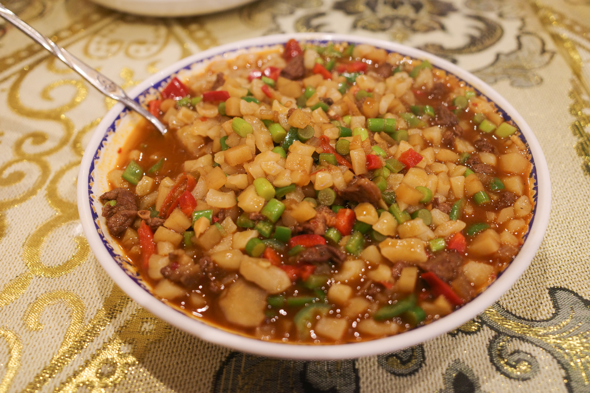 こちらは、一見野菜を細かく切ったスープのようにも見えますが、実は麺を刻んだものが入っています。食べてみると少し辛かったですが、トマトの様な酸味を感じるソースがたっぷりと入っており、パスタを食べるような気分で美味しく頂きました。麺を刻んだ炒め物というのは初めて食べたので、とても新鮮でした。
