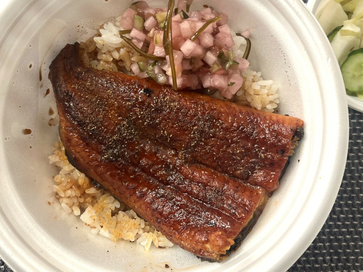 「皮めがパリッと焼かれたうなぎはふっくら。口の中に入れると皮の香ばしさとうなぎの旨味が一気に広がります。たっぷりかけたタレが染み込んだごはんなので、うなぎが少なくてもごはんが進みます。これぞ高コスパ!」