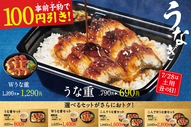 7月28日(水)の土用の丑の日を含む3日間限定で「うな重」、「Wうな重」を、各100円引きでご購入可能!