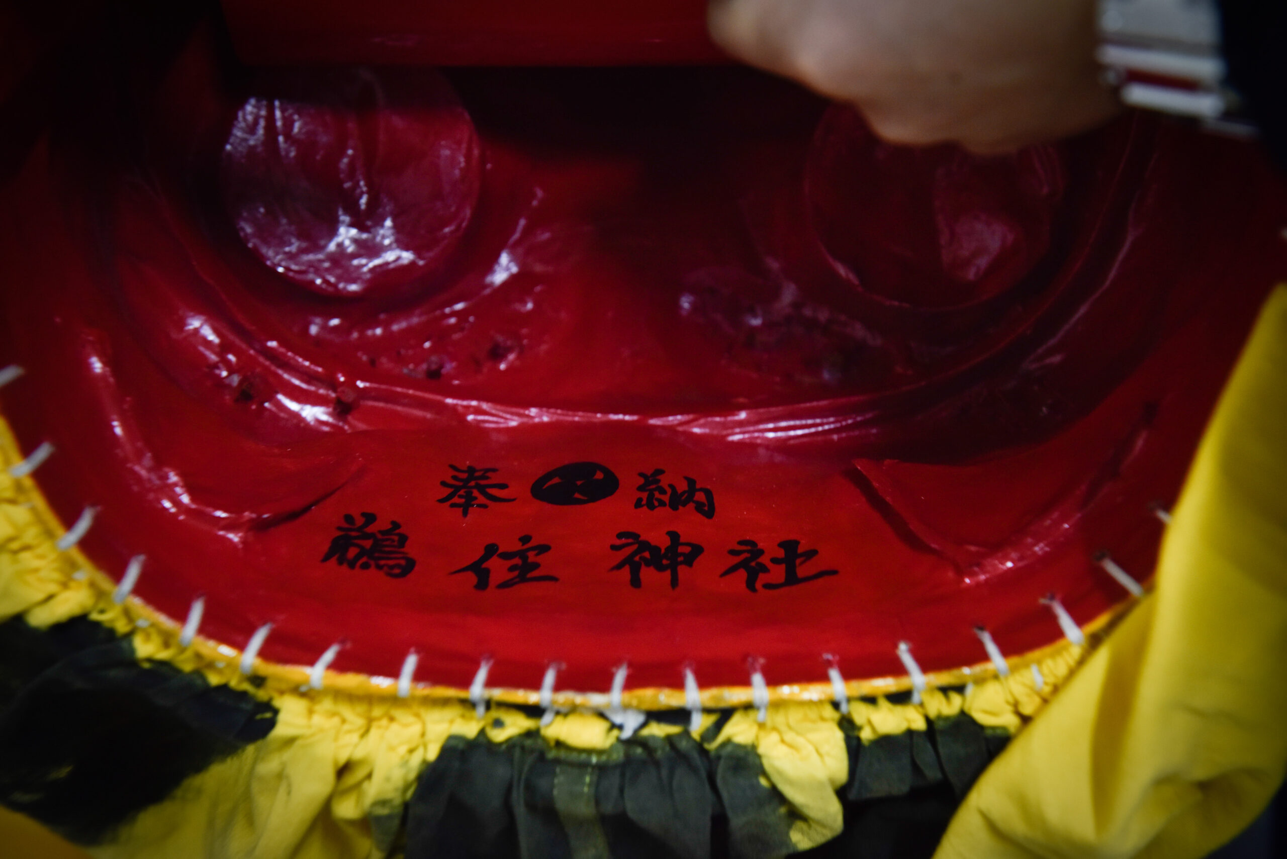 虎頭の裏には、「奉納 鵜住神社」の文字