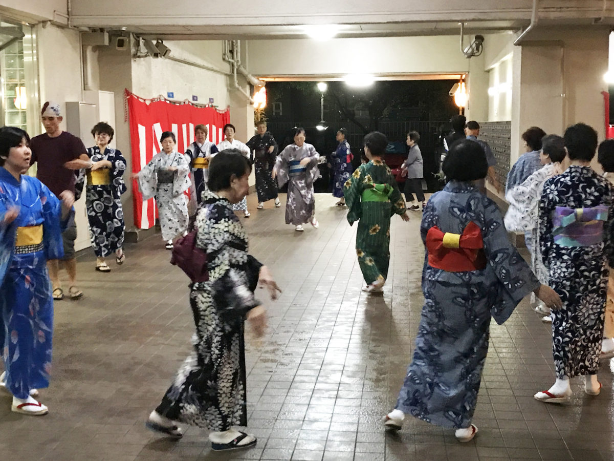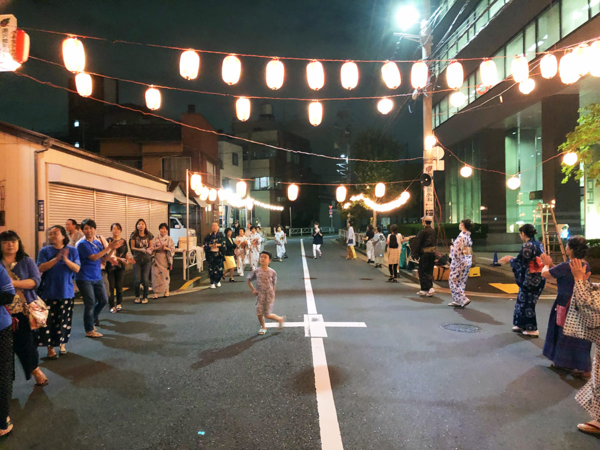 公園や通りに移動式の櫓を建てる町会、ジャングルジムを櫓がわりにする町会、シンプルに輪踊りのみ楽しむ町会、マンションの吹き抜けで踊る町会など、不思議なことに、同じ曲でも違う雰囲気の中踊ると、全く印象が異なるのだ。