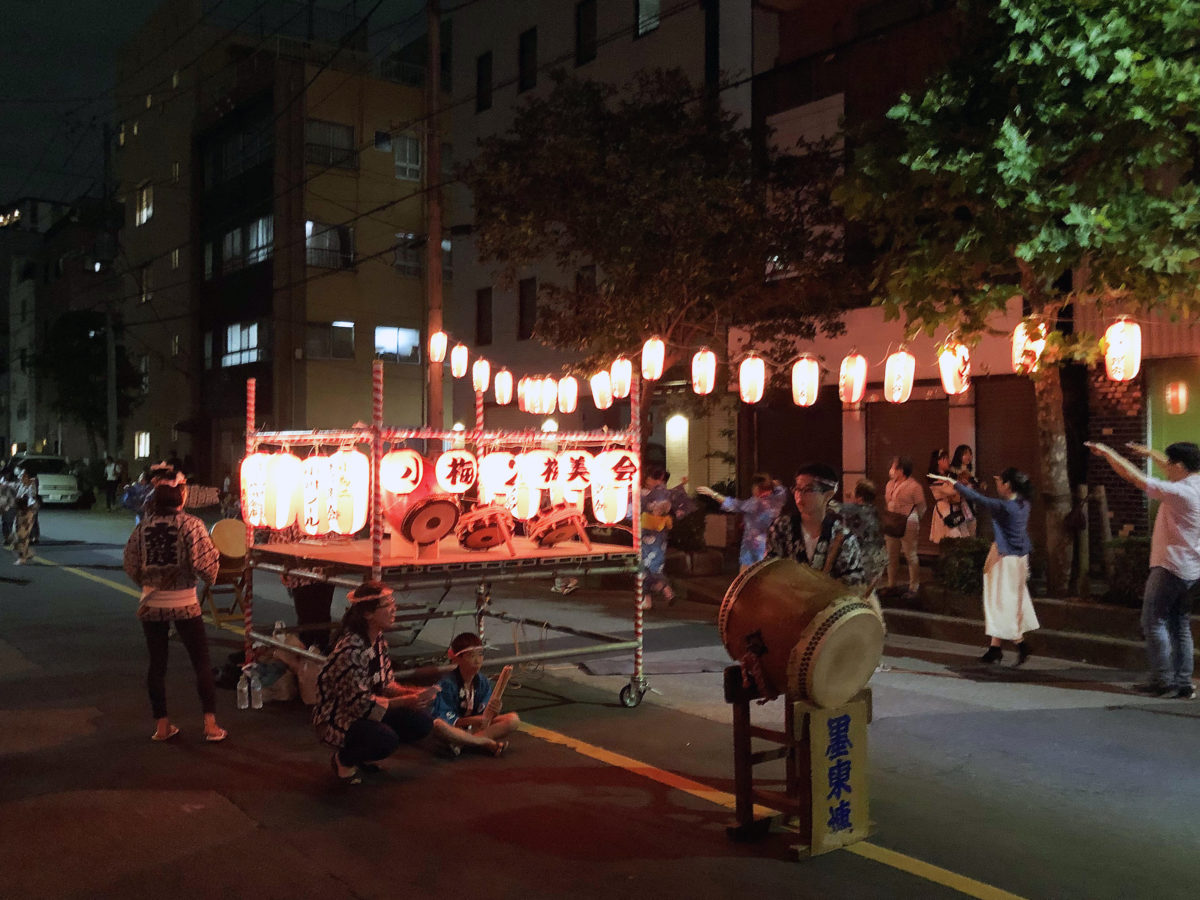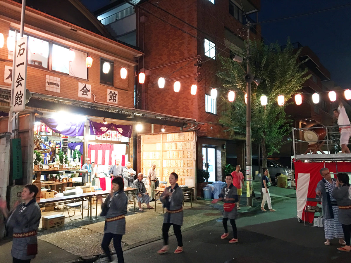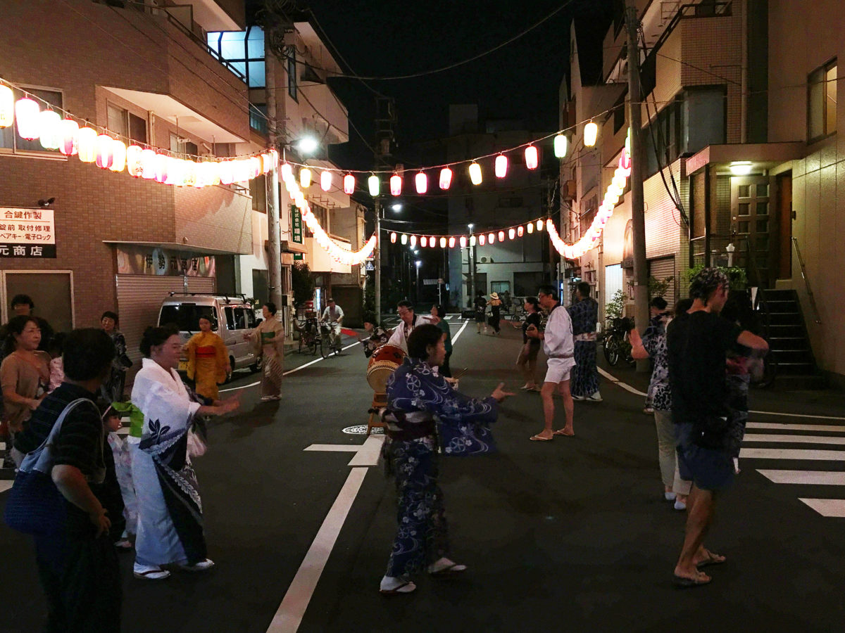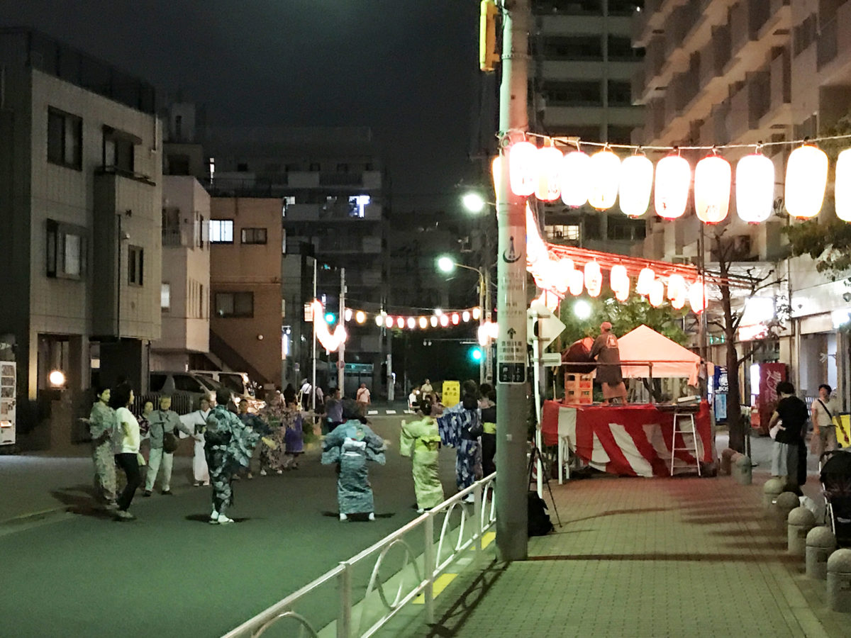 下町風情漂う路上で踊る。吾妻橋三丁目町会