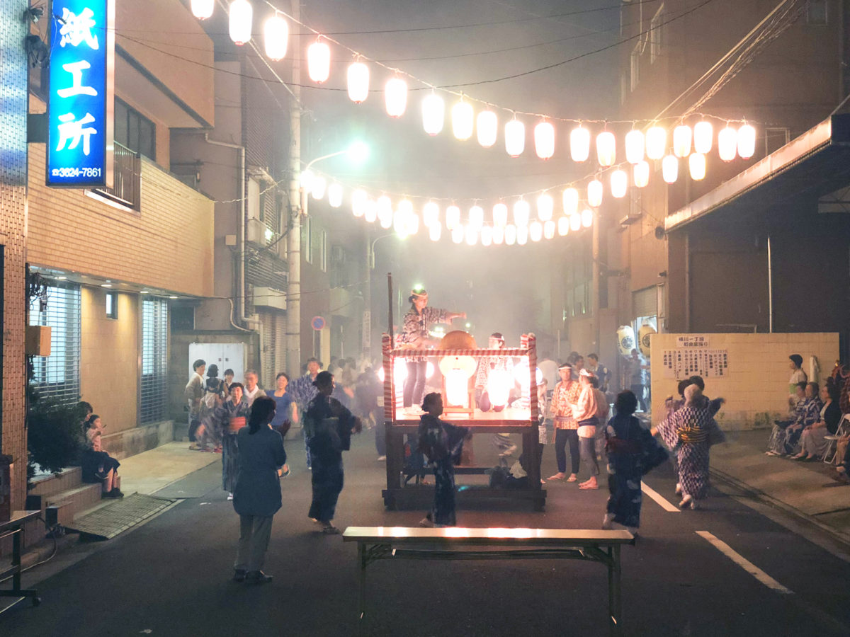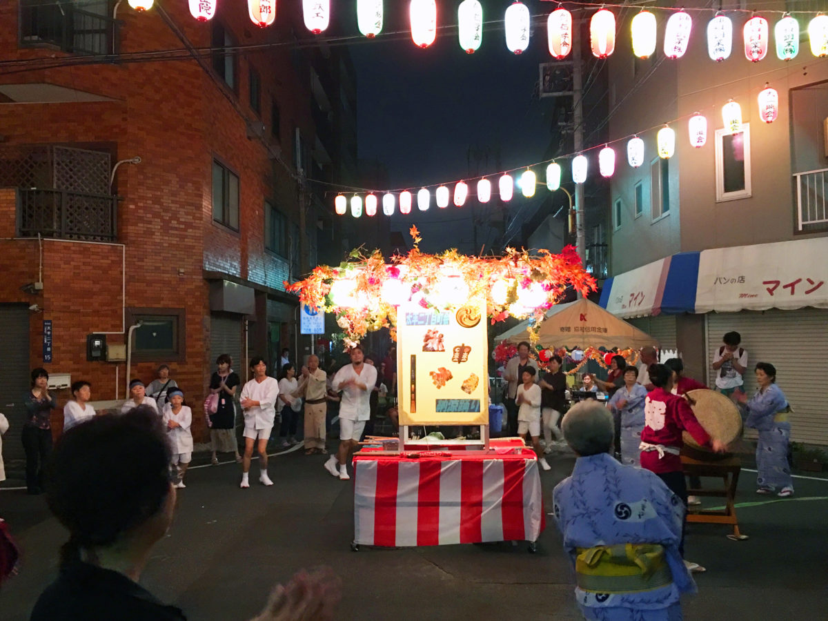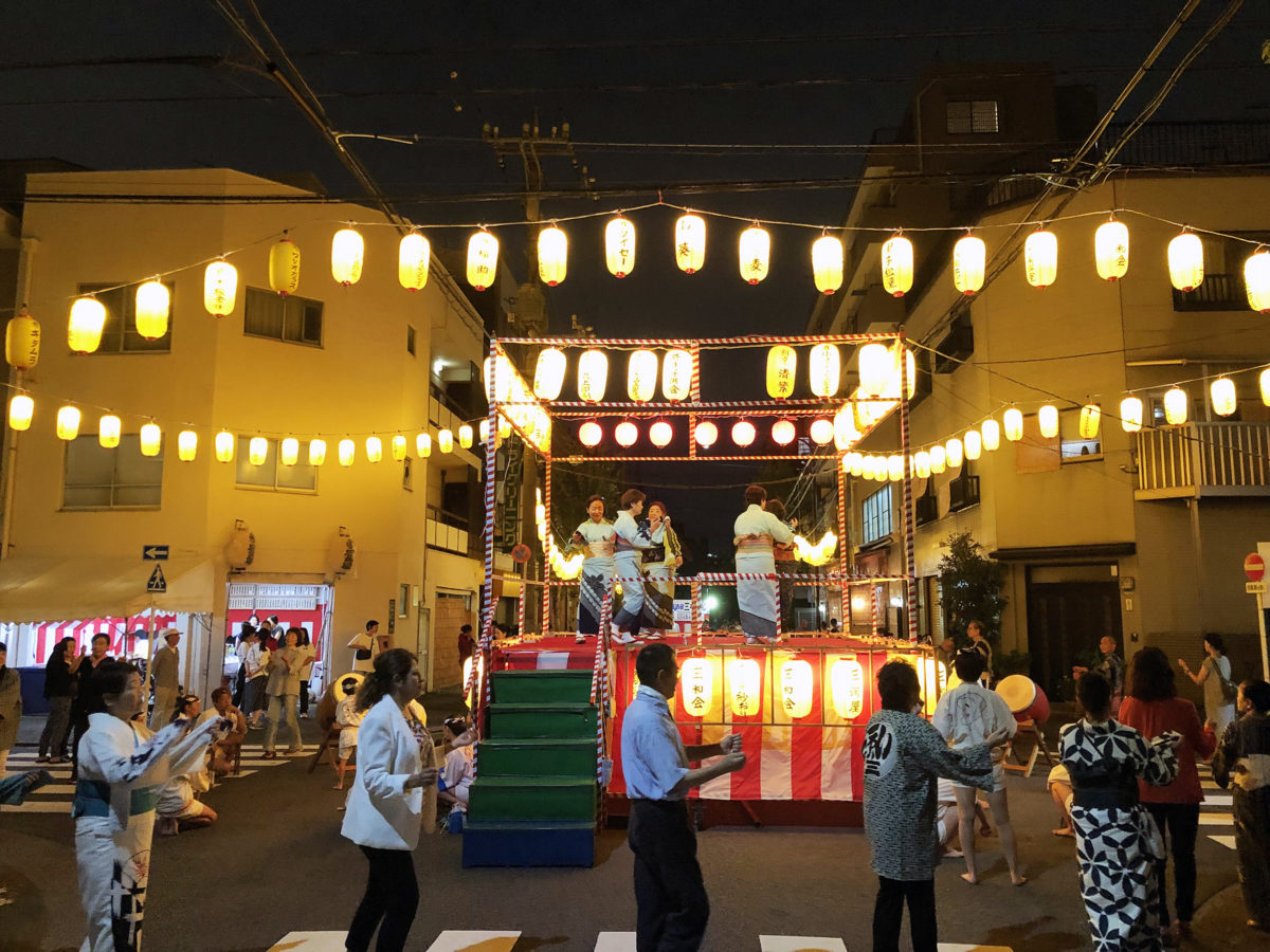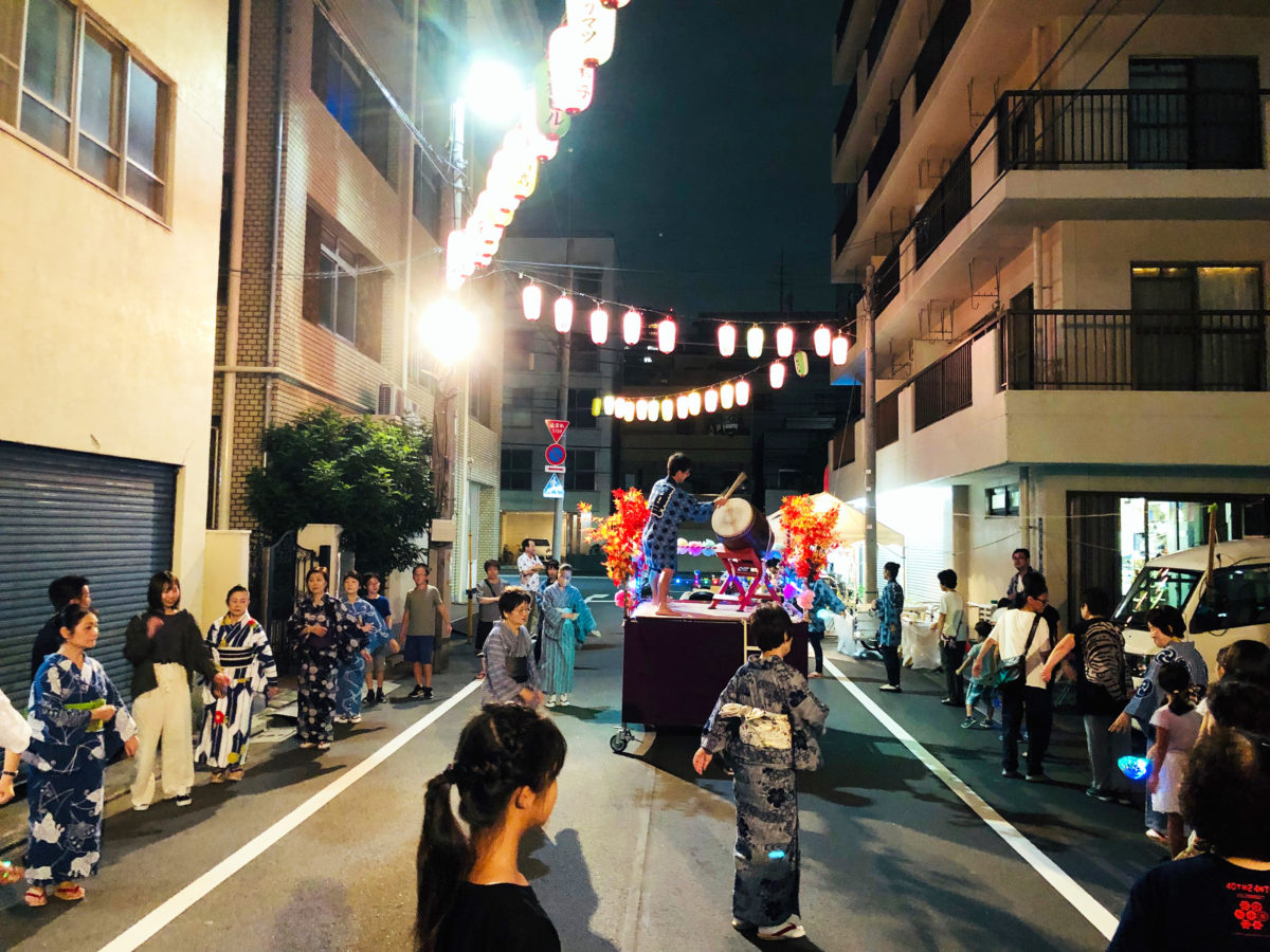 下町風情漂う路上で踊る。吾妻橋三丁目町会