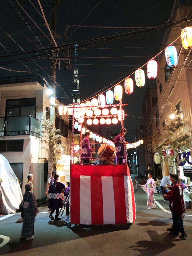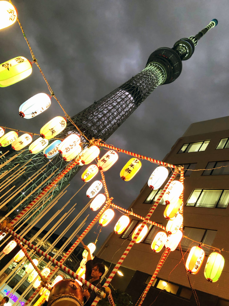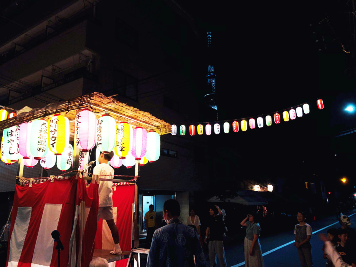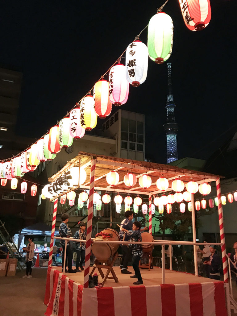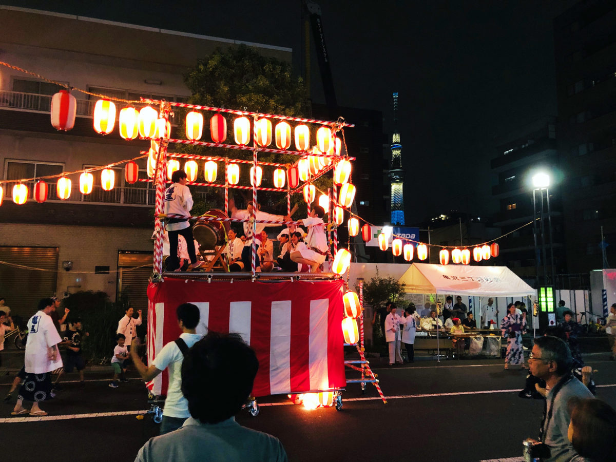 東京スカイツリーの絶景を見ながら踊りを楽しめる。吾妻橋二丁目町会