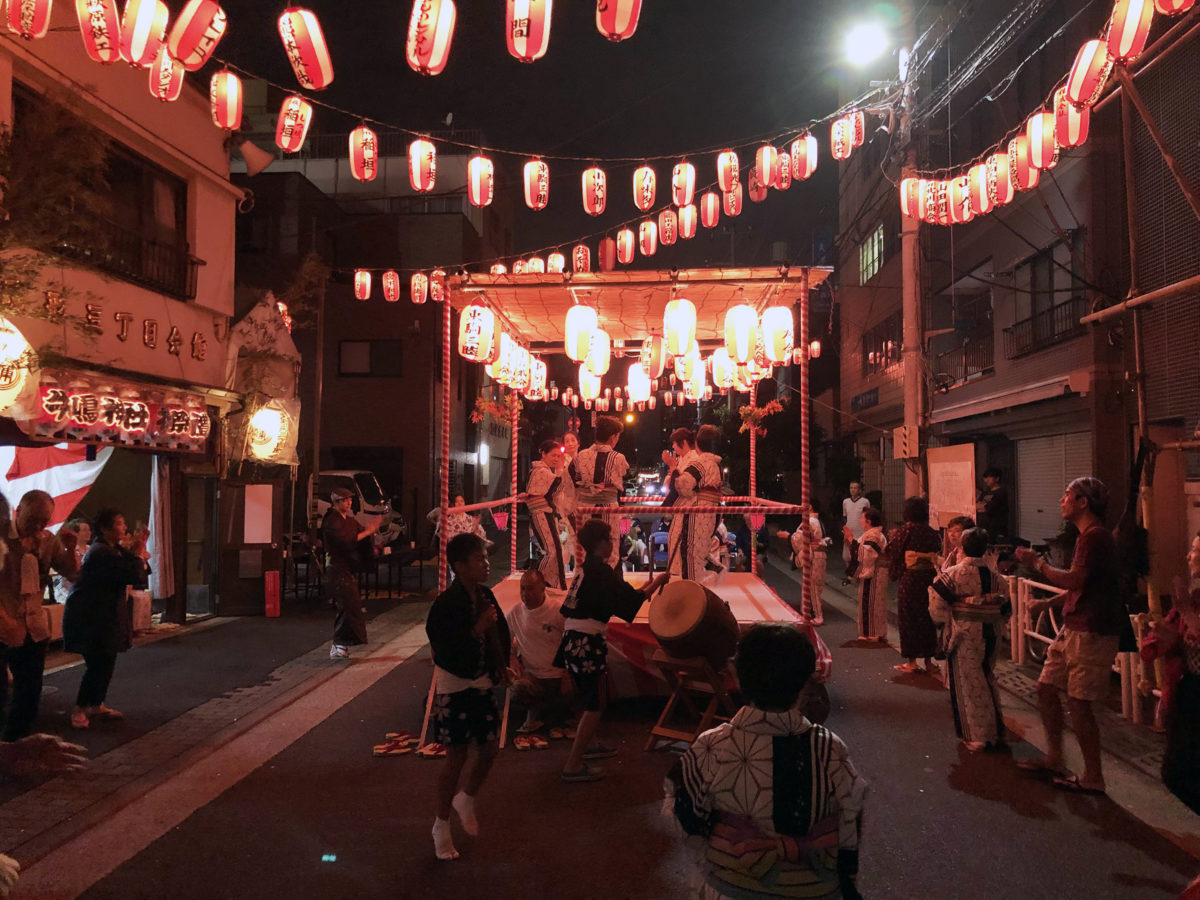 2011年9月、はじめて【牛嶋神社祭礼氏子町会奉納踊り】に参加したボクは、目的の踊り場からすぐ近所の町会でも盆踊りが行われていることを知る。そこへの移動中にも、別の町会に櫓がある様子、通りのあちこちに提灯が灯る姿に興奮し、終始アドレナリンが止まらなかった。