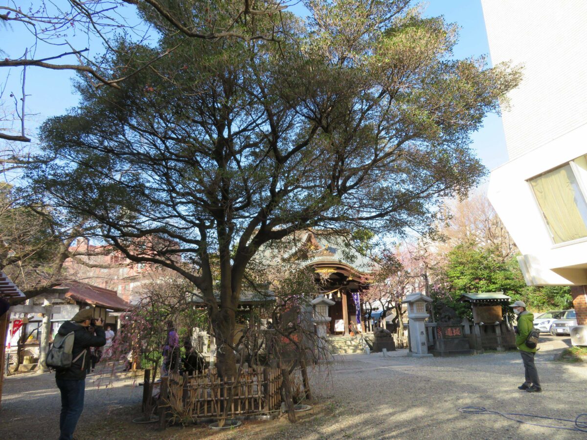 牛天神北野神社は、源頼朝が1184年に創建しました。頼朝がこの地にあった岩に腰をかけ休んでいたときに、牛に乗った菅原道真が夢に現れ、「二つの喜びがある」と告げられたのです。翌年にはその喜びが現実のものとなり、その岩を奉じて牛天神を創立したと伝わります。境内の中央では樹齢100年を超えるご神木の木斛(もっこく)が、大きな枝を広げています。