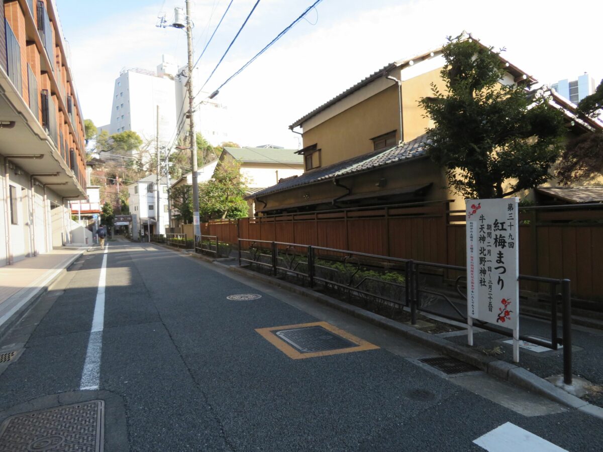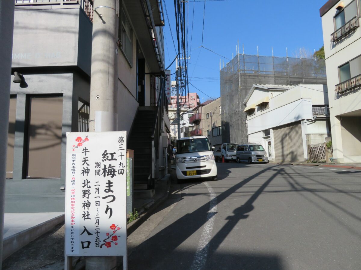 牛天神北野神社の周辺に立つ「紅梅まつり」の案内