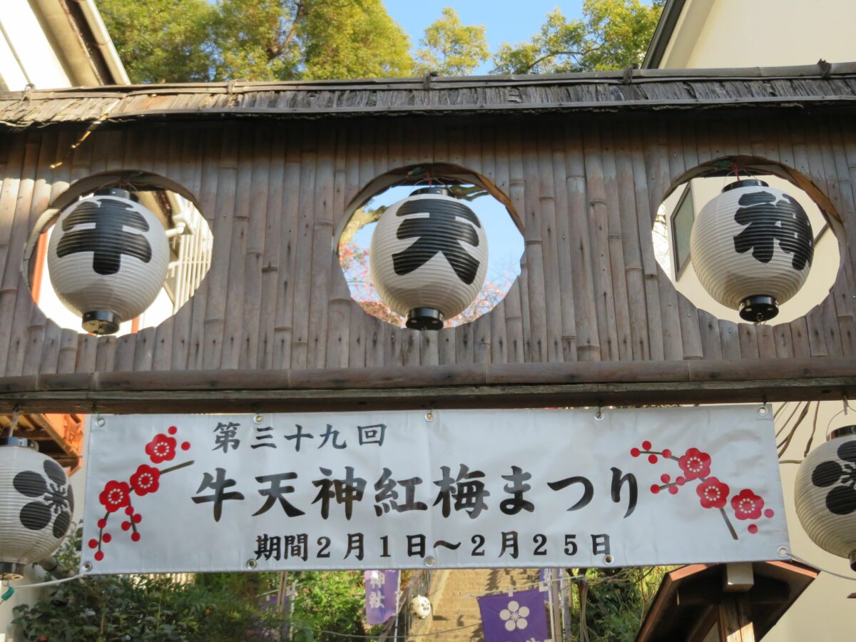 牛天神北野神社の入口の「紅梅まつり」の案内