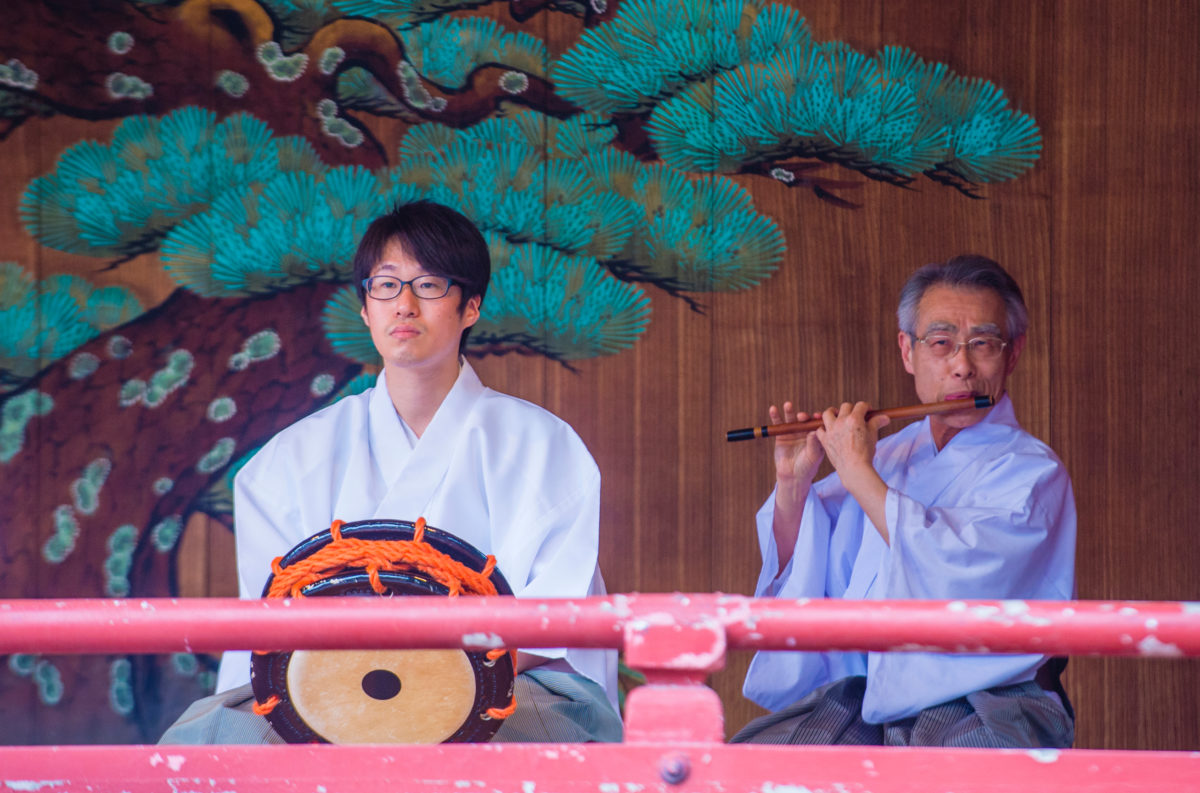 境内神楽殿では東京都無形文化財指定の里神楽・葛西囃子(かさいばやし)の奉納。