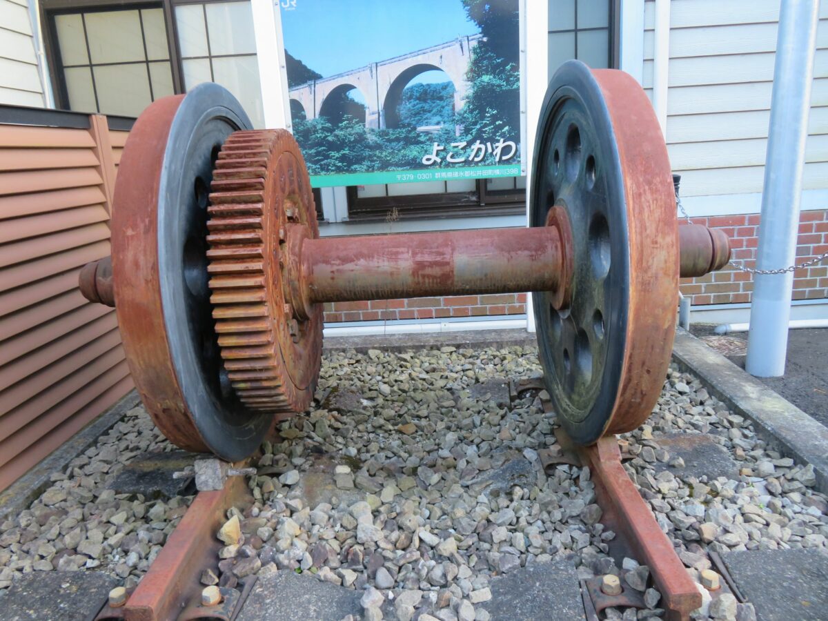 横川駅に展示されるアプト式の運行を行った電車の車輪
