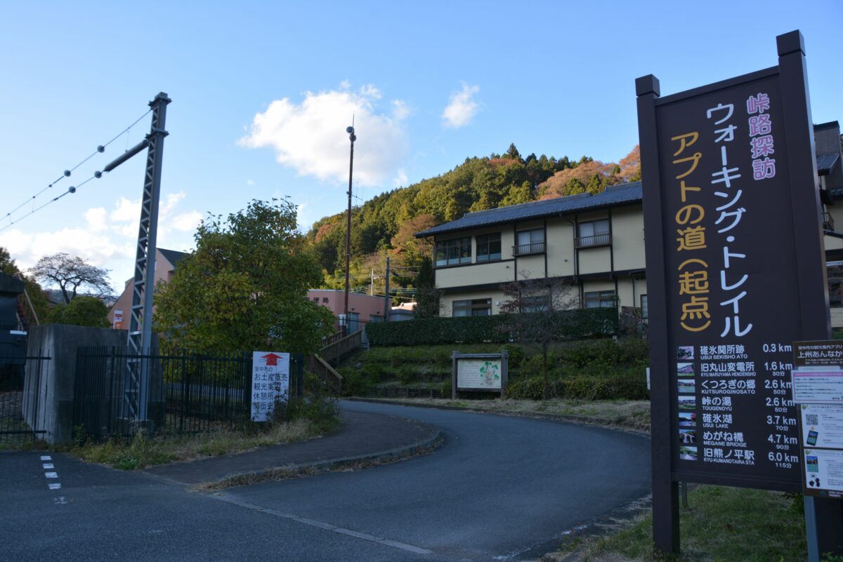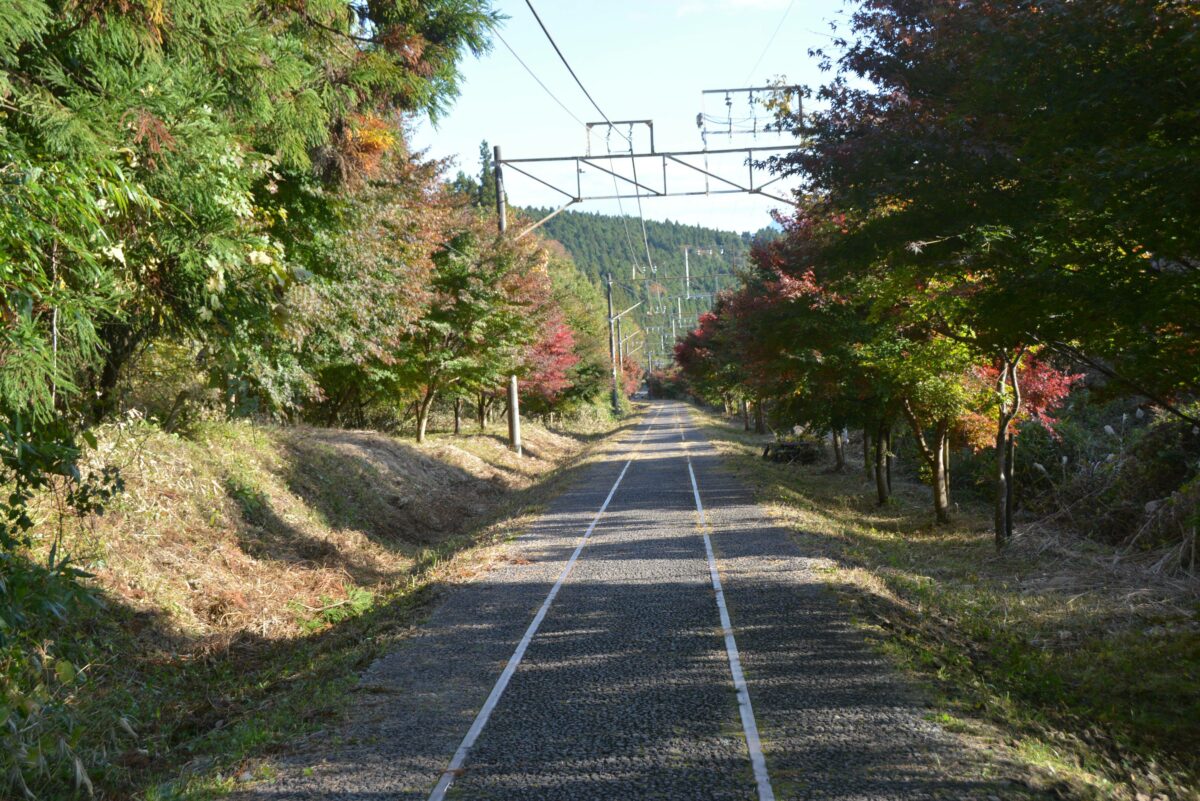 「鉄道文化むら」の北からは、峠に向かって「アプトの道」というウォーキング・トレイルが整備されています。アプト式の車両が通った線路跡を自らの足で登ることができるのです。