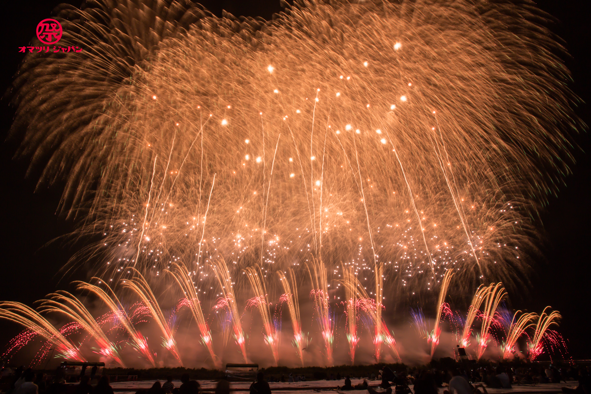 フィナーレのプログラム担当は山梨県のマルゴー。こちらも幅450mのワイドスターマイン。一流花火師が選ぶ見るべき花火大会の1位に選ばれた神明の花火を担当する煙火店です。