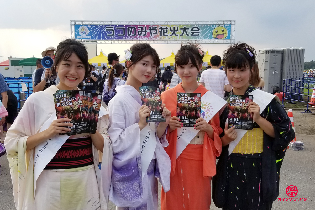 うつのみや花火大会イメージガール2019 左から、青柳 春花さん(あおやぎ はるか)、福田 舞雪さん(ふくだ まゆき)、北川 玲さん(きたがわ れい)、五江渕 愛夢さん(ごえぶち あいむ)