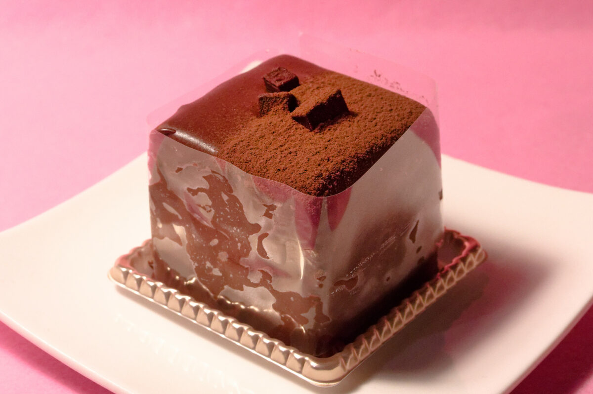 スポンジは、しっとりとしたほろ苦い口当たり。全体的に香り高く、味い深いチョコレートケーキです。チョコレート好きな奥様や彼女さんにピッタリ!