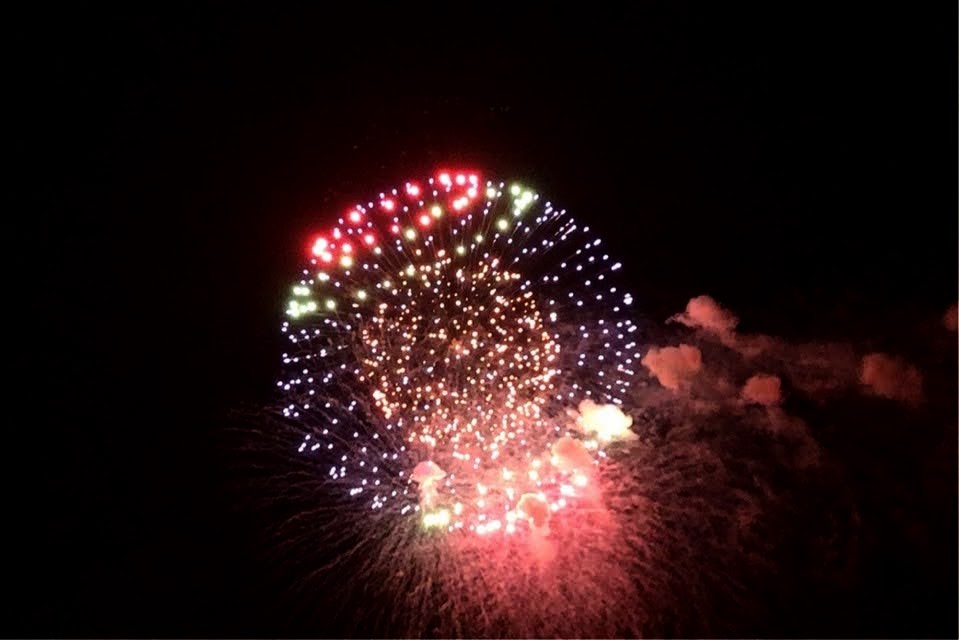 2022年の若草山焼きも、18時10分過ぎ頃からの花火でスタートしました。冬の澄んだ空に打ち上がる鮮やかで巨大な花火は、夏とは違った趣で人々を魅了します。花火が上がるたびに、凍えるような寒さを忘れるほどの静かな熱気が広がったのが印象的です。