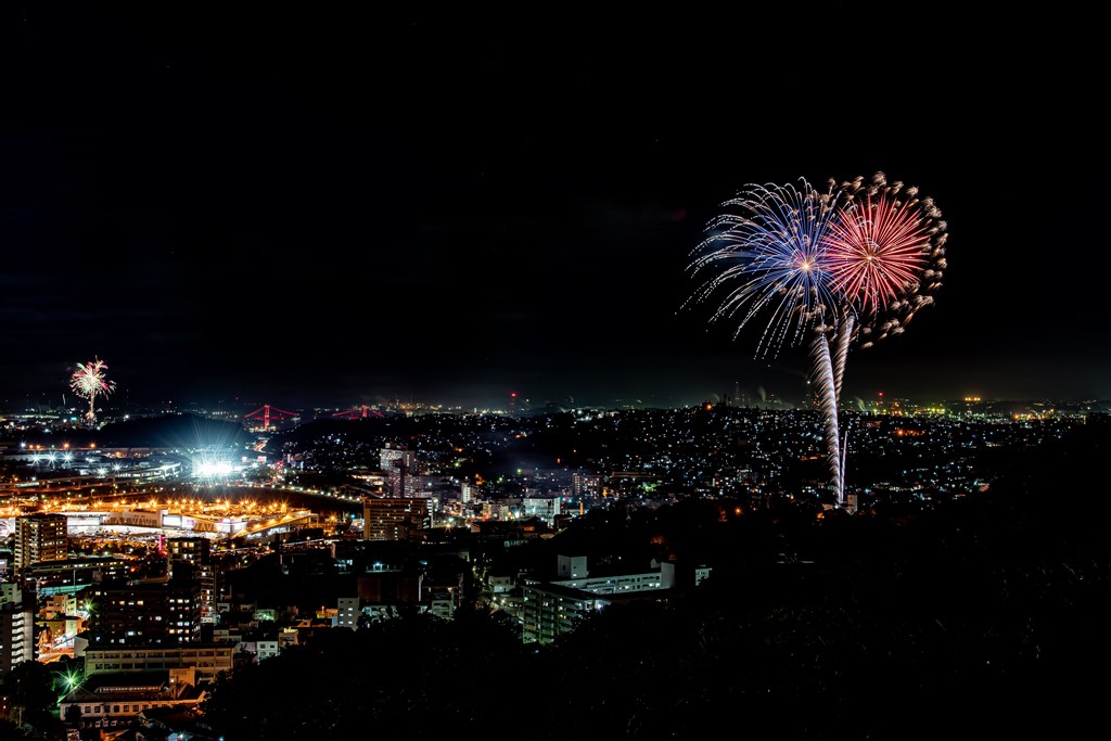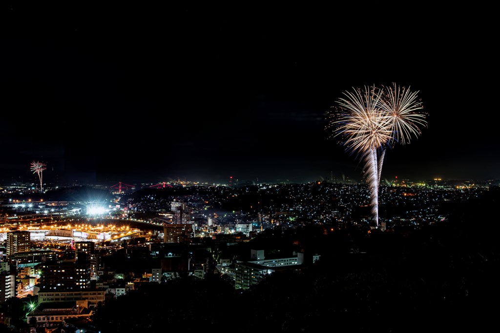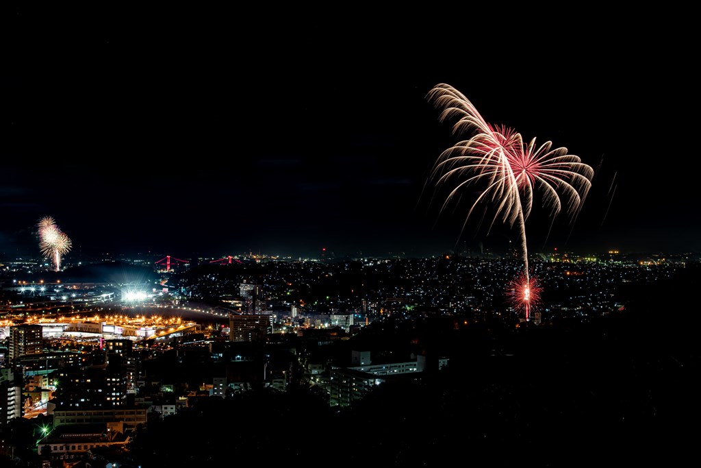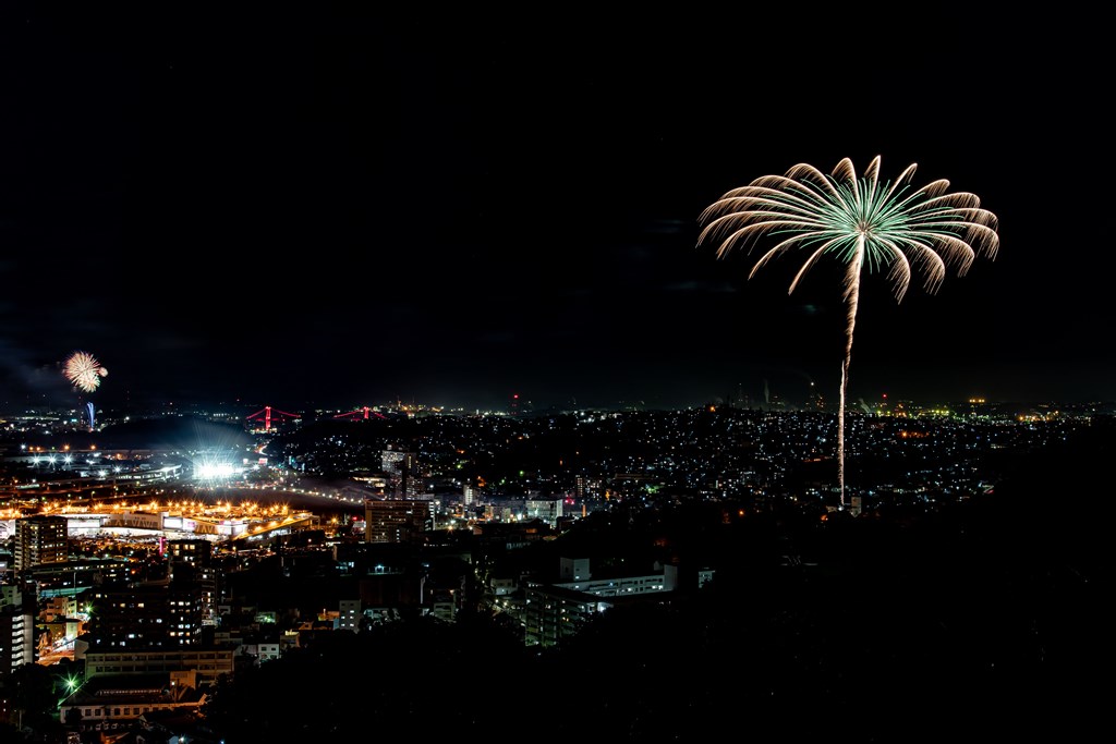 市内10ヶ所の中でも八幡東区の高炉台公園では、最大4号の花火が約300発打ち上げられました。