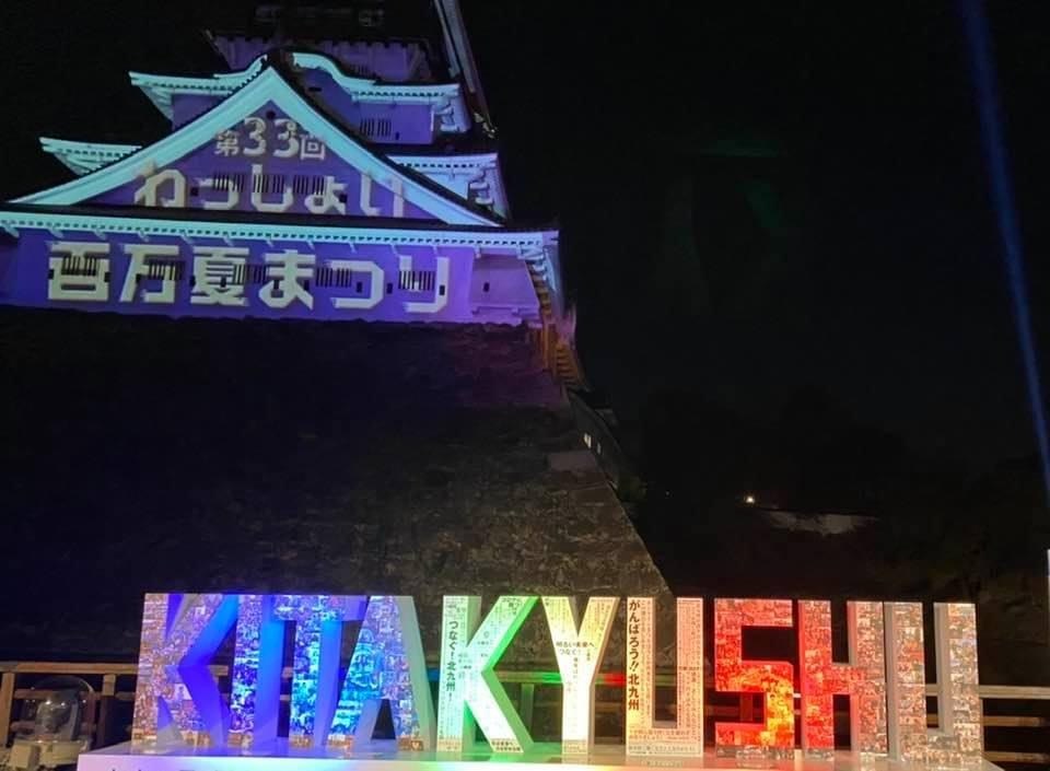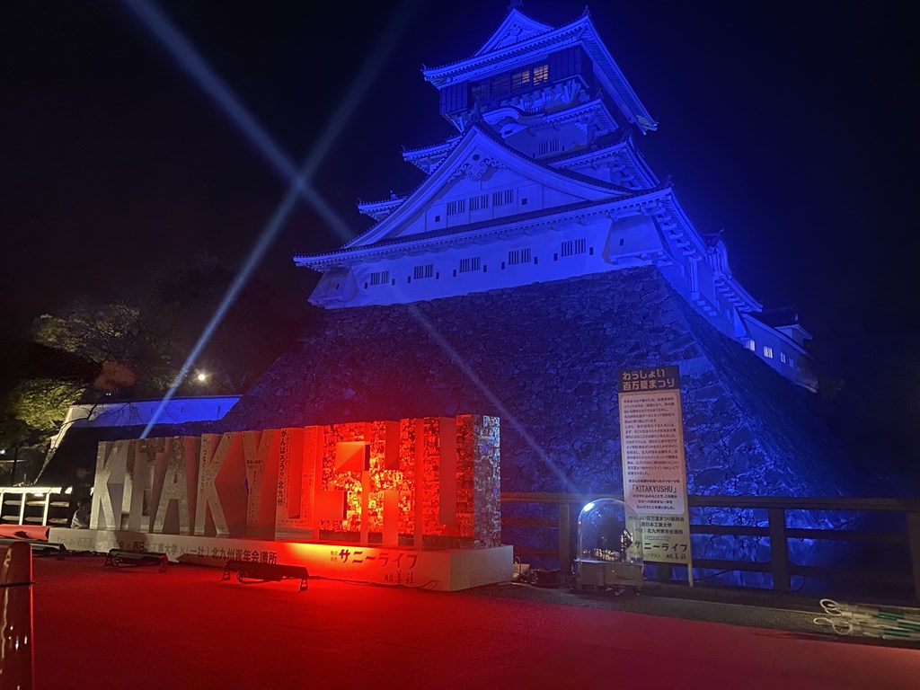 小倉城前に設置されたオブジェの除幕式や小倉城に映し出されたプロジェクションマッピングもWebを通じてお披露目されました。
