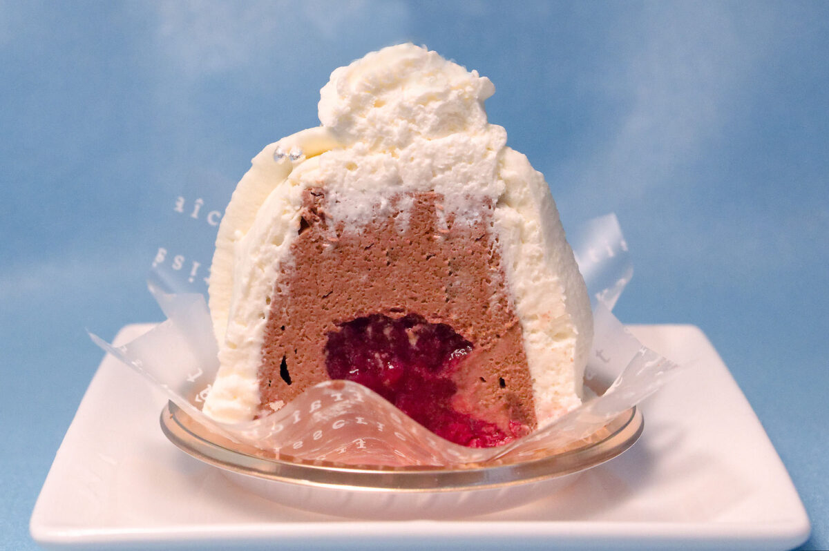 続きまして、ホワイトチョコクリームの中から顔を覗かすチョコムース。食べ始めはふんわりとしたビター感が広がりますが、食べ進めるうちにルビーチョコレートのような強い酸味とフルーティな香りに変化していきます。