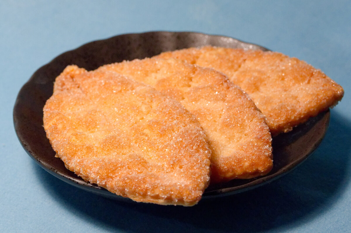 パリッと割ってみると、パイ生地が幾重にも折り重ねられているのがわかりますね。このままパクり!サクサクとした食感とともに、発酵バターのリッチな香りがじんわりと口いっぱいに染み渡ります。さらに、表面にまぶされた粒状の砂糖がゆっくりと溶けるので、芳醇なバター風味と、さらっとした甘味を贅沢に楽しむことができる逸品です。ただ、一部の店舗では取り扱いが無いのでご注意ください。