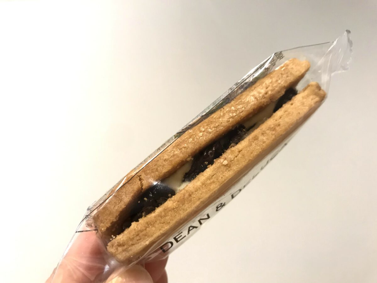 食べてみるとしっとりしてやや柔らかい、ホクっとしたクッキー生地がとても美味しいです。マカロンの外側に似たナッツ感と、少し洋酒のような風味を感じたので、大人向けのお菓子だと感じました。